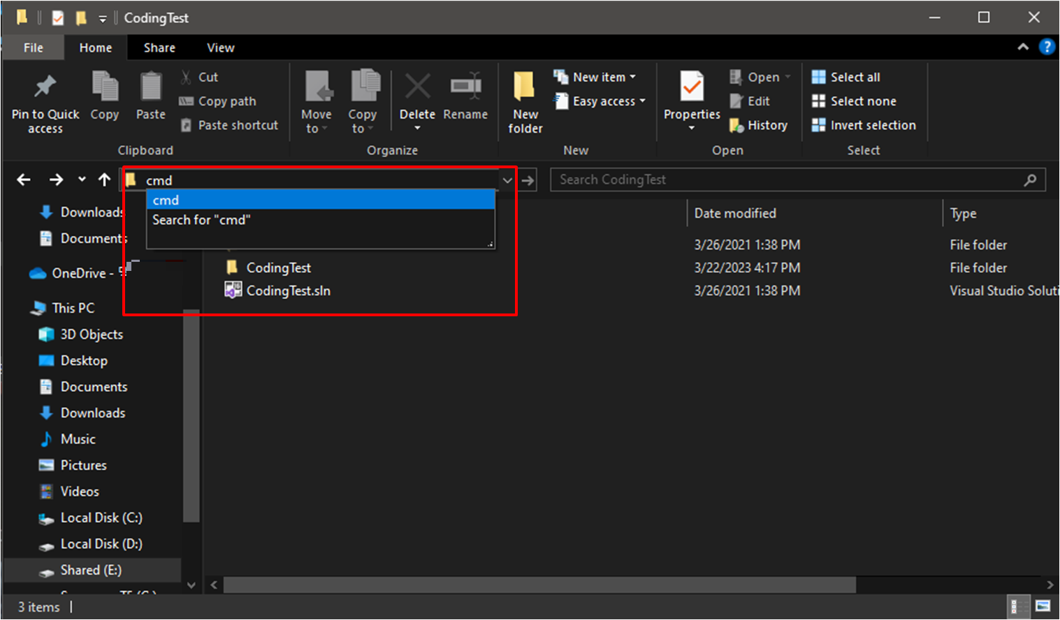 ํด๋น ํ๋ก์ ํธ ์๋ฃจ์ ์ด ์๋ ํด๋์์ cmd ์คํ