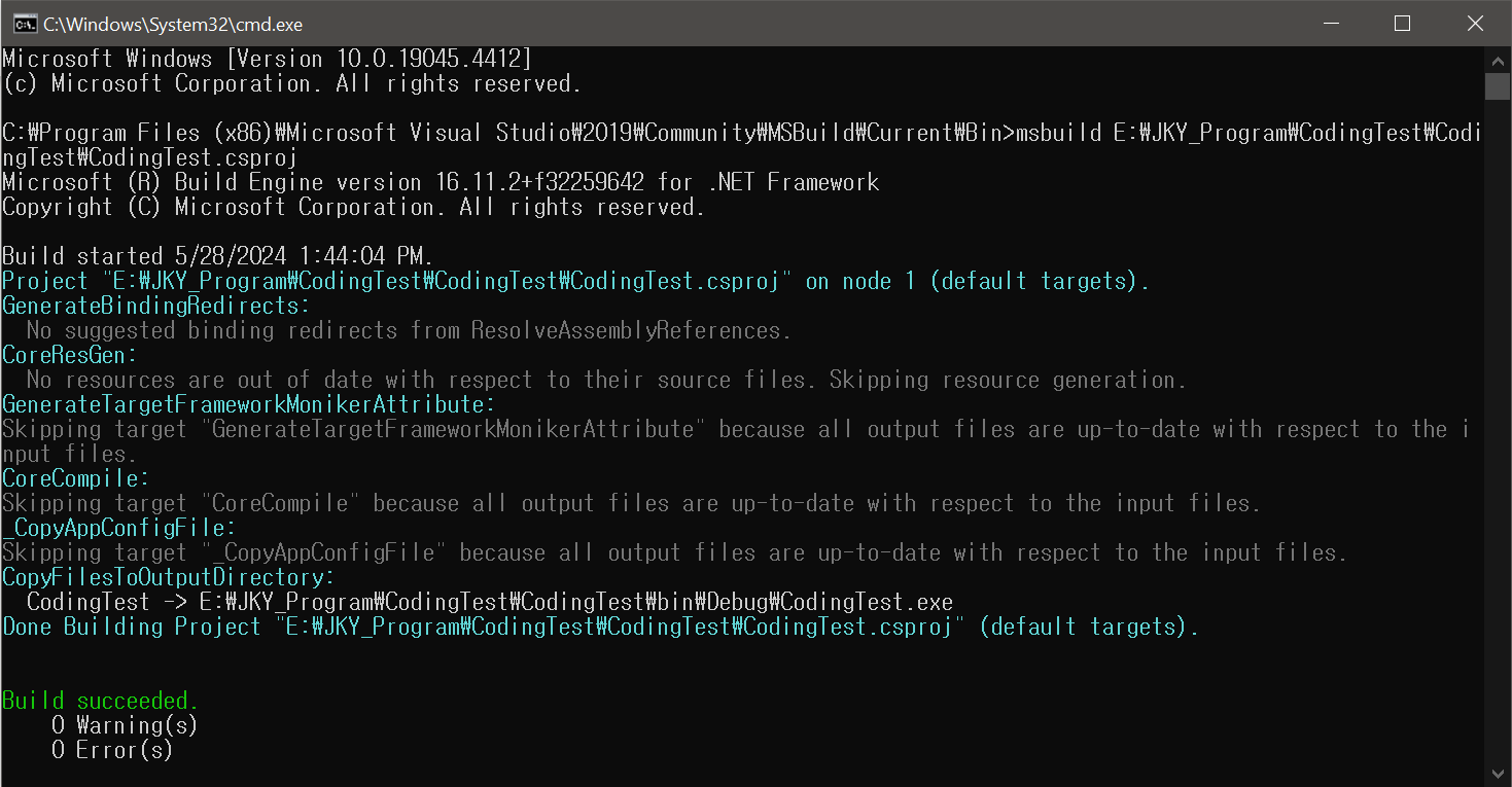 ํด๋น ํ๋ก์ ํธ ๊ฒฝ๋ก์์๋ >msbuild๋ง ์ ๋ ฅํด๋ ๋น๋ ์์