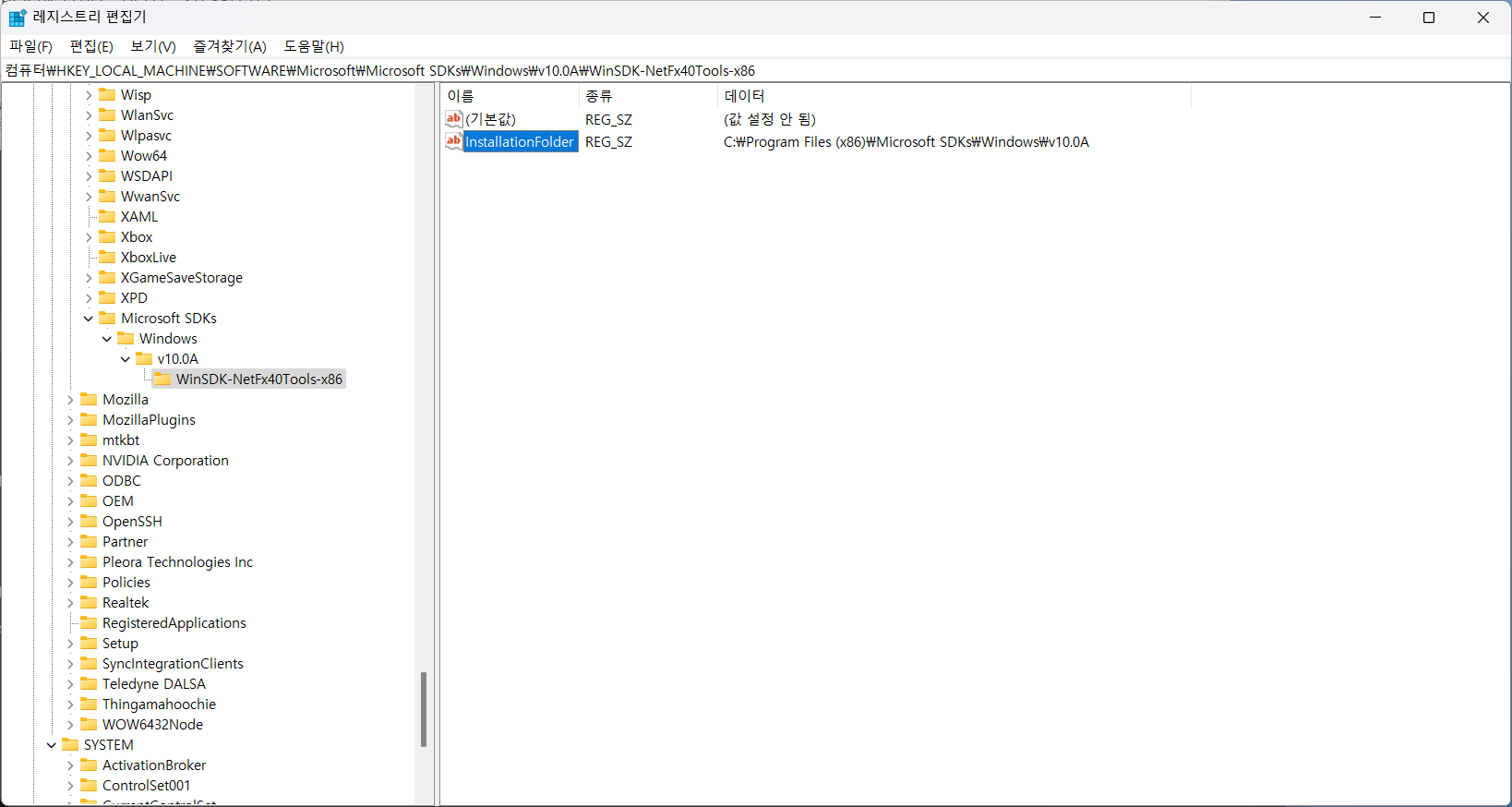 HKEY_LOCAL_MACHINE\SOFTWARE\Microsoft\Microsoft SDKs\Windows\v10.0A\WinSDK-NetFx40Tools-x86