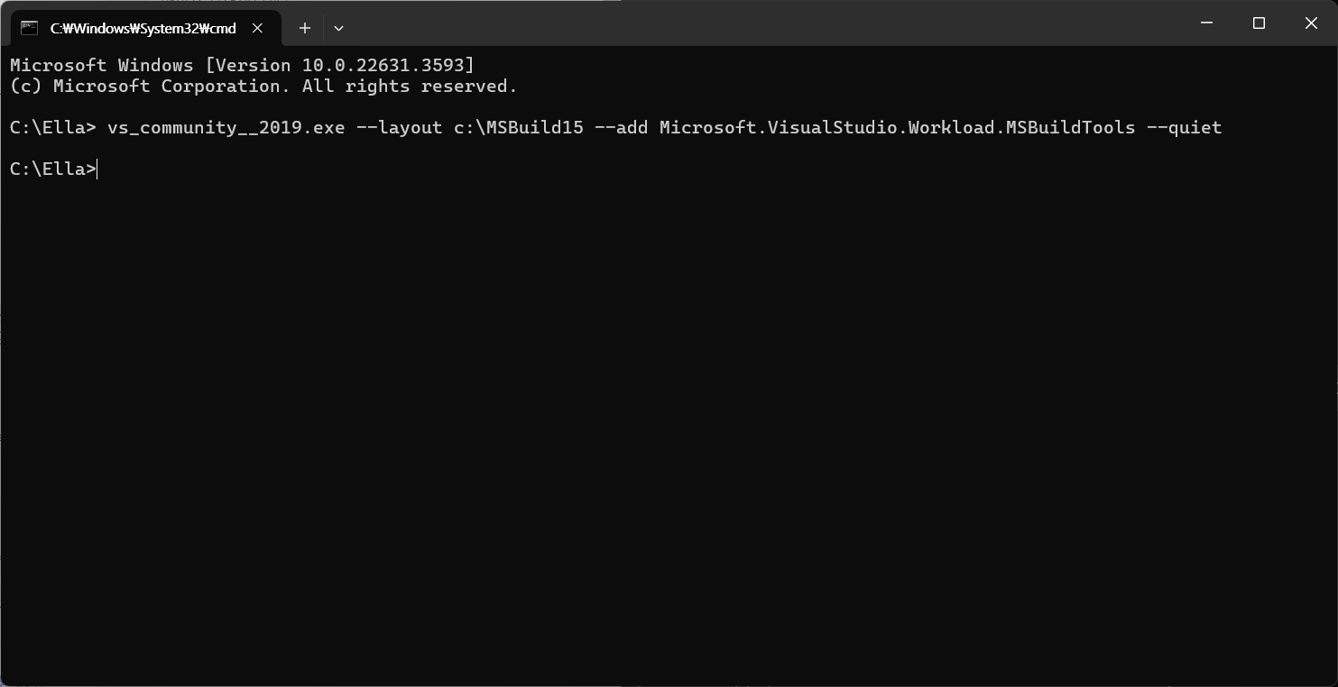 Visual Studio 2019 ์ค์น ์ํ์ผ ๋ Cmd๋ก ์คํํ๋ ๋ฐฉ๋ฒ์ ๋ค์๊ณผ ๊ฐ๋ค.