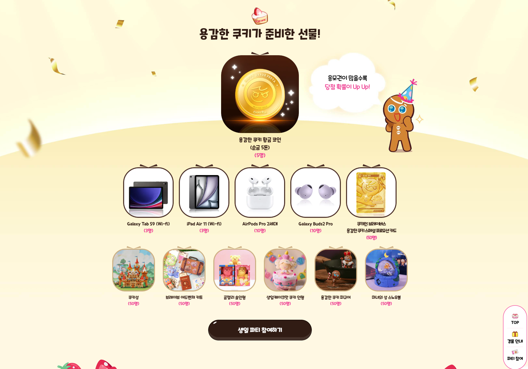 용감한 쿠키의 15번째 생일을 기념하는 쿠키런 Happy Brave Festa! 생일 파티에 참여하고 풍성한 선물을 받아보세요!