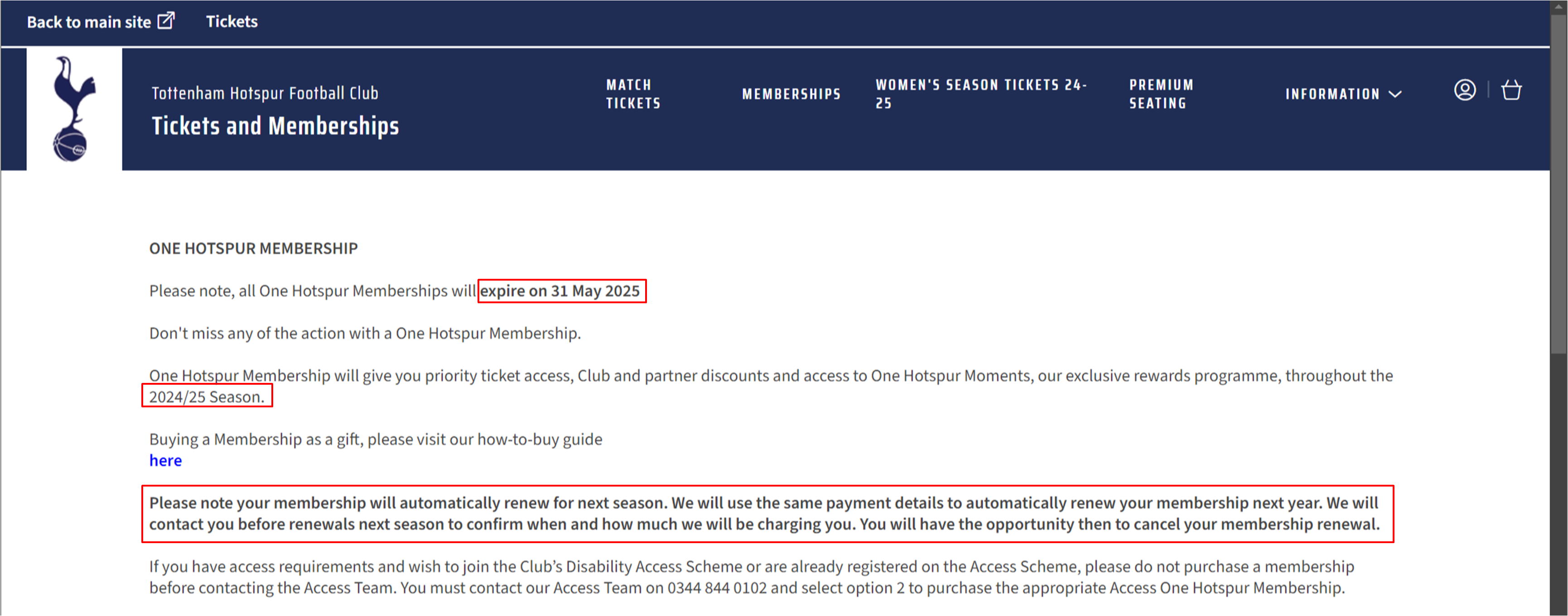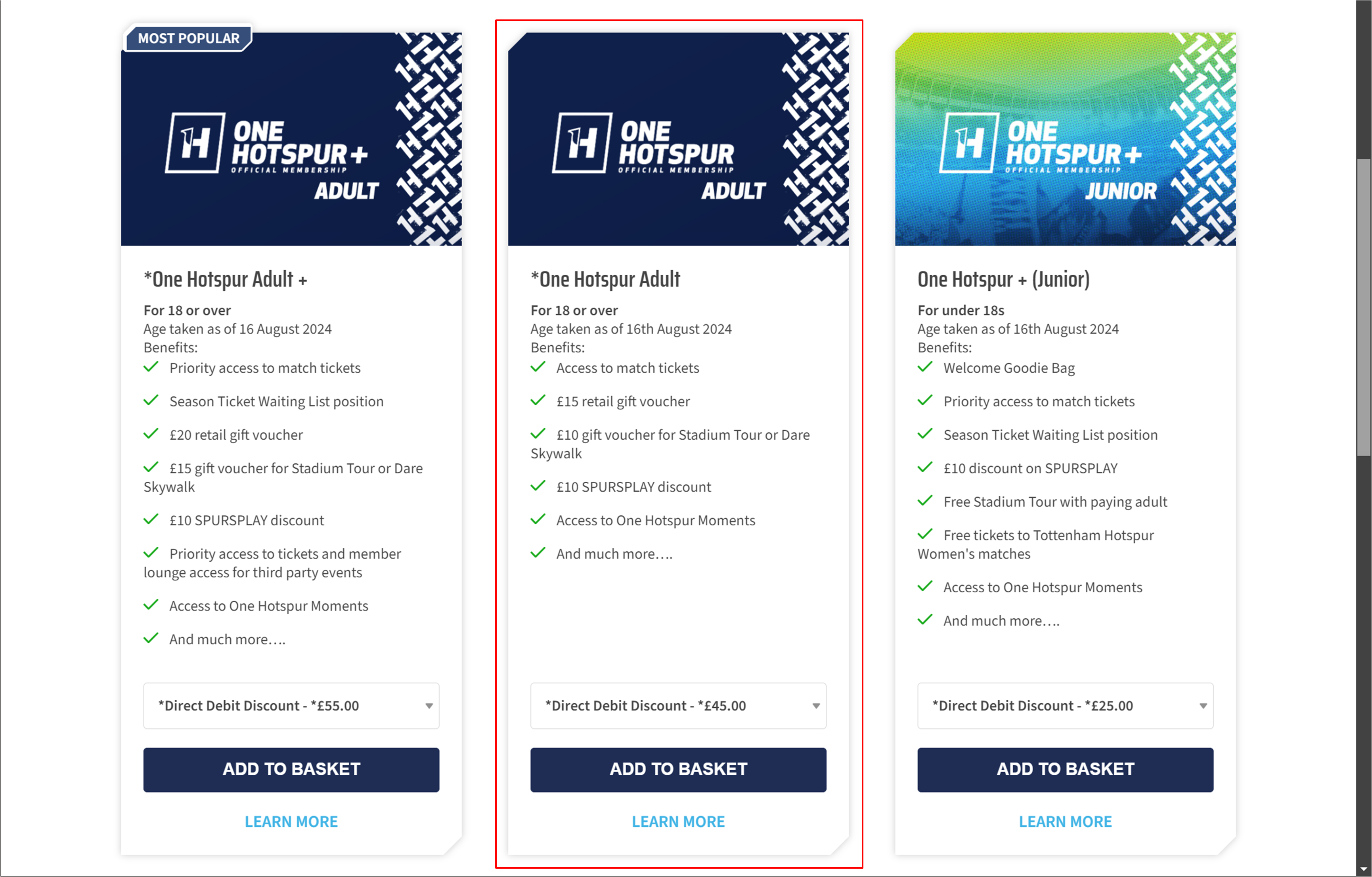 멤버십 종류는 이렇게 다섯가지가 있는데, 저는 One hotspur Adult 멤버십으로 가입했습니다.