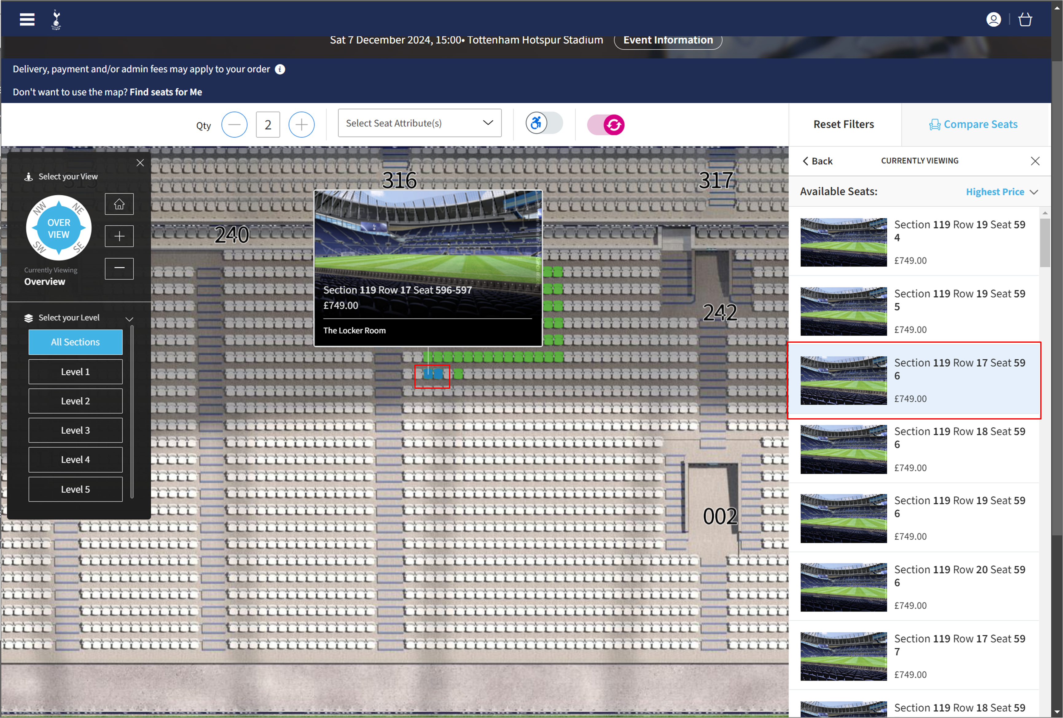 선택한 좌석이 마음에 들면 Add to Basket 버튼을 눌러 장바구니에 넣습니다.