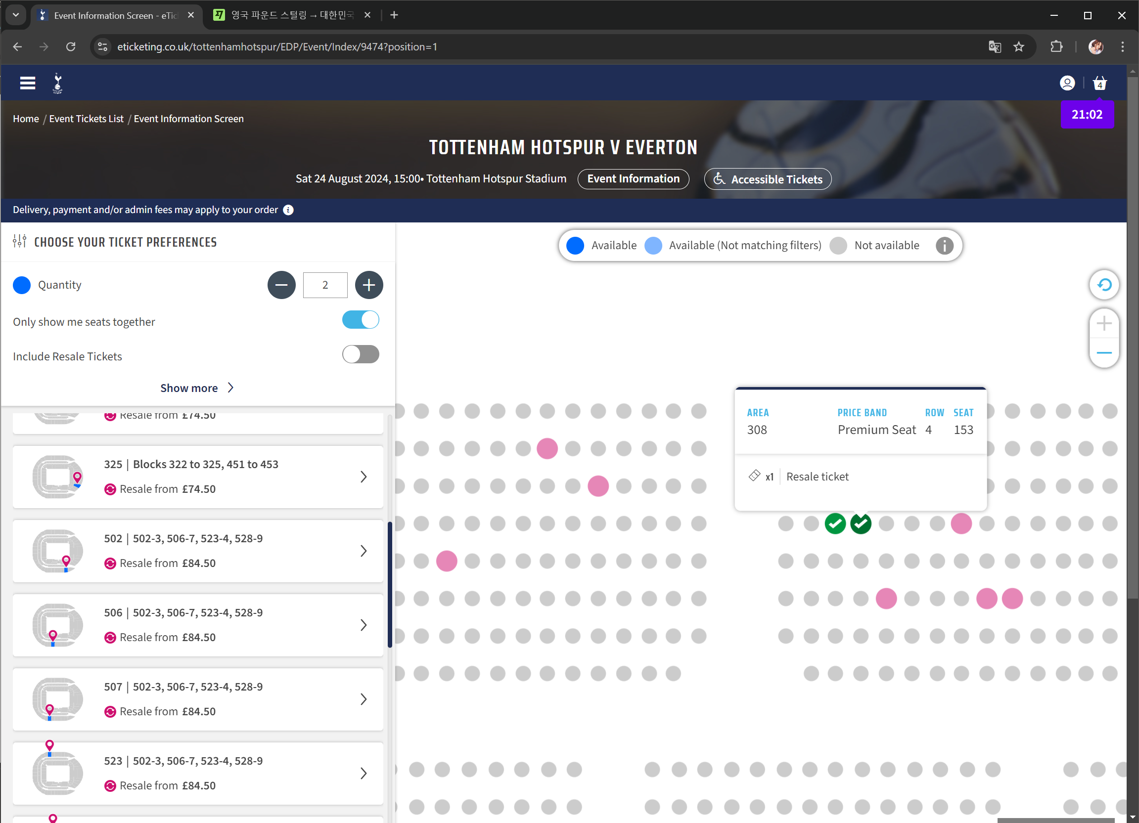 [ 토트넘 홋스퍼 티켓팅 홈페이지 ]