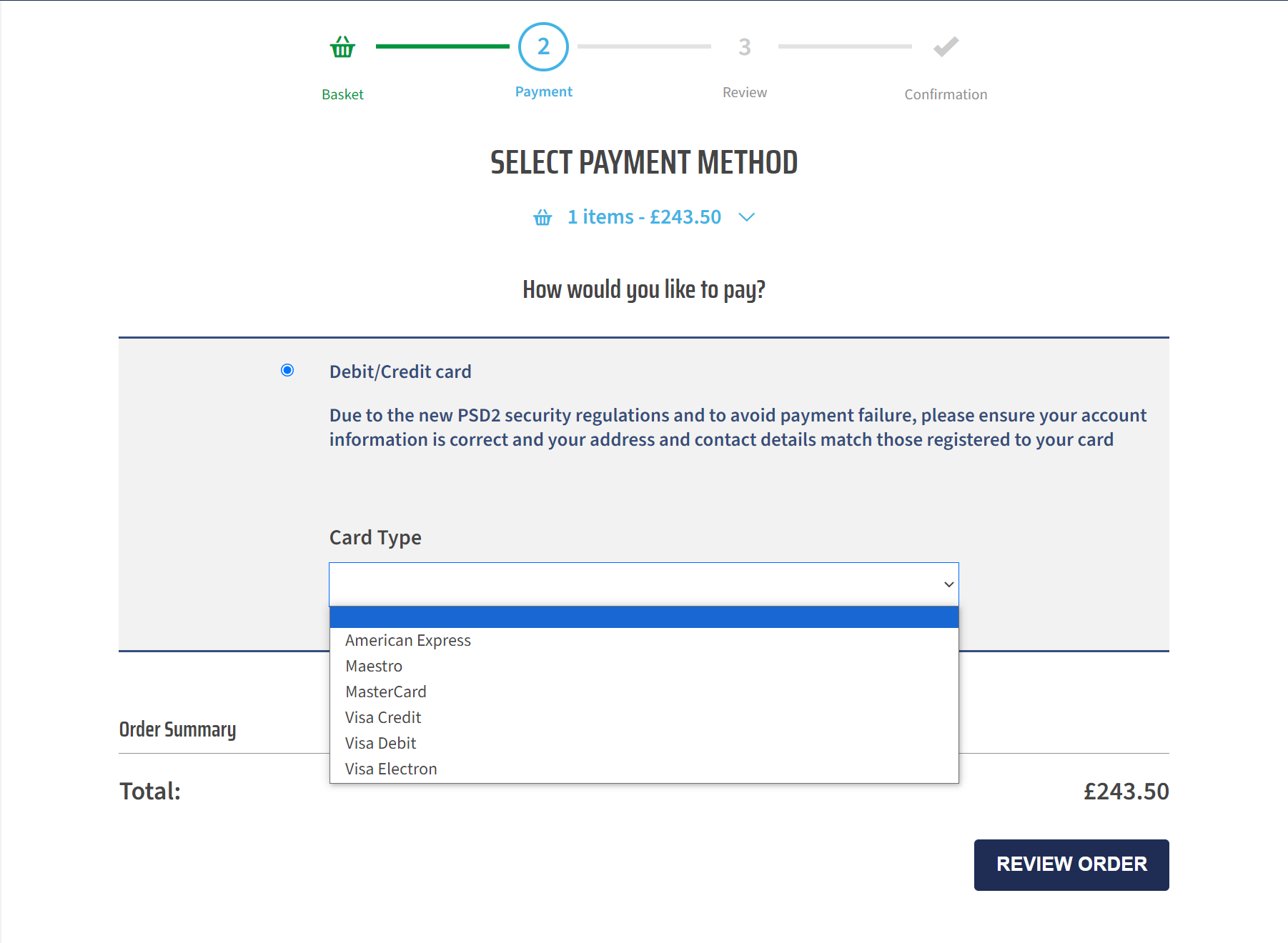 PROCEED TO CHECKOUT 버튼을 눌러 결제를 진행합니다.