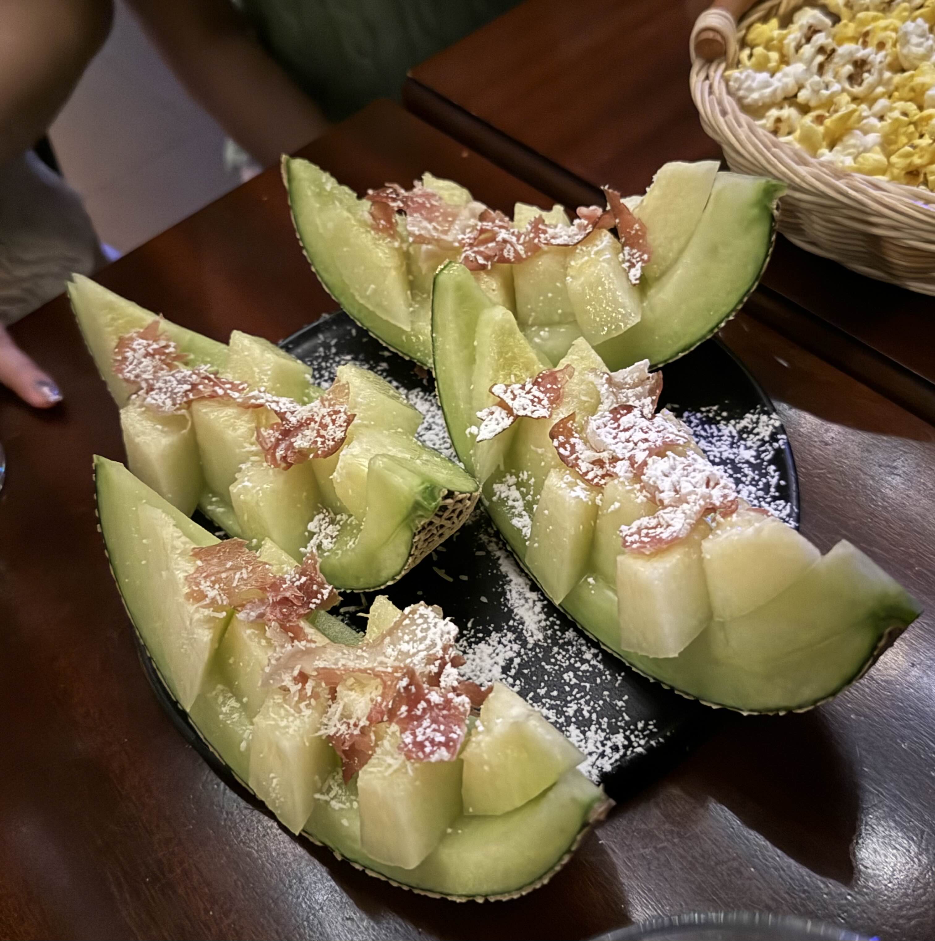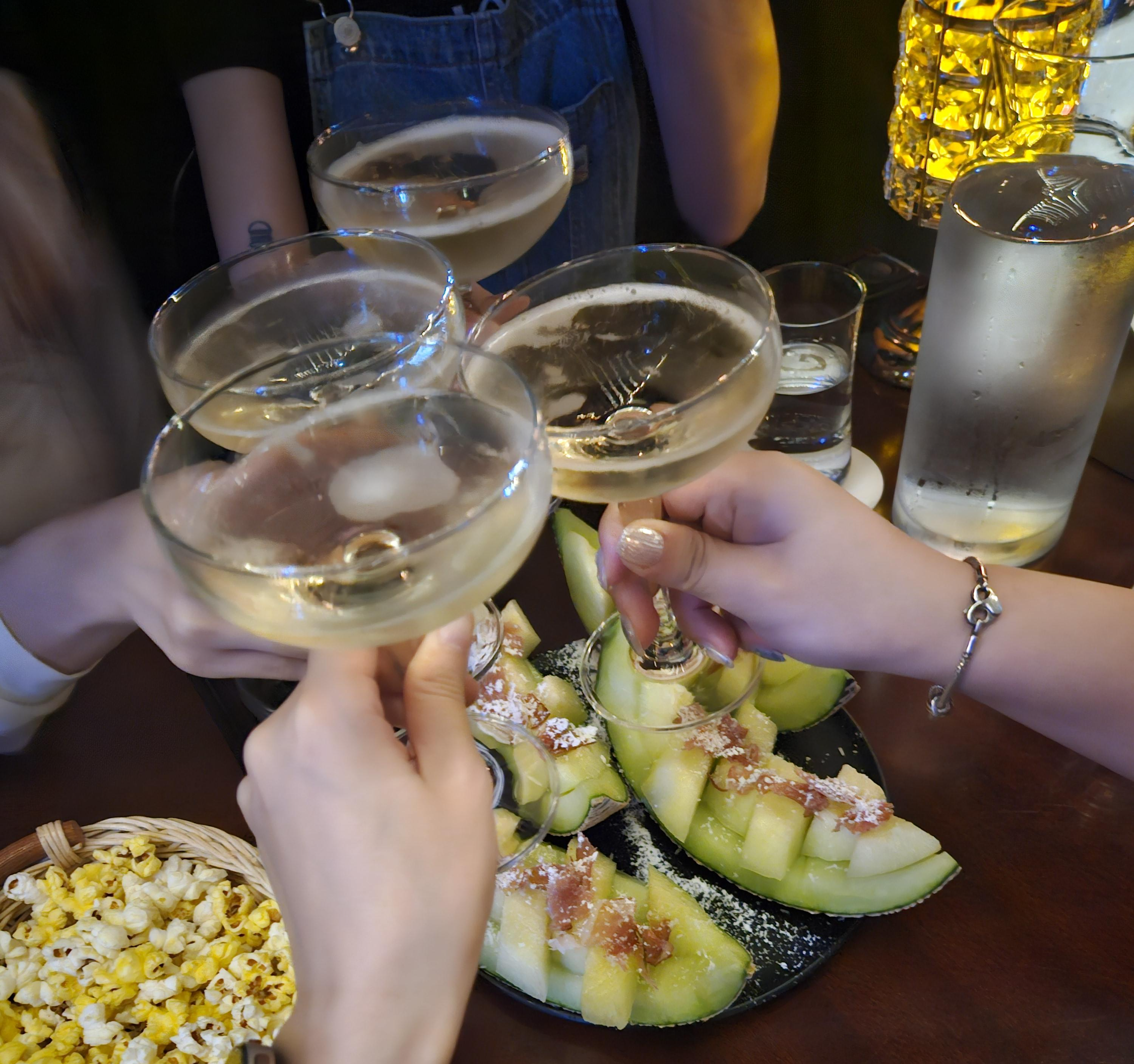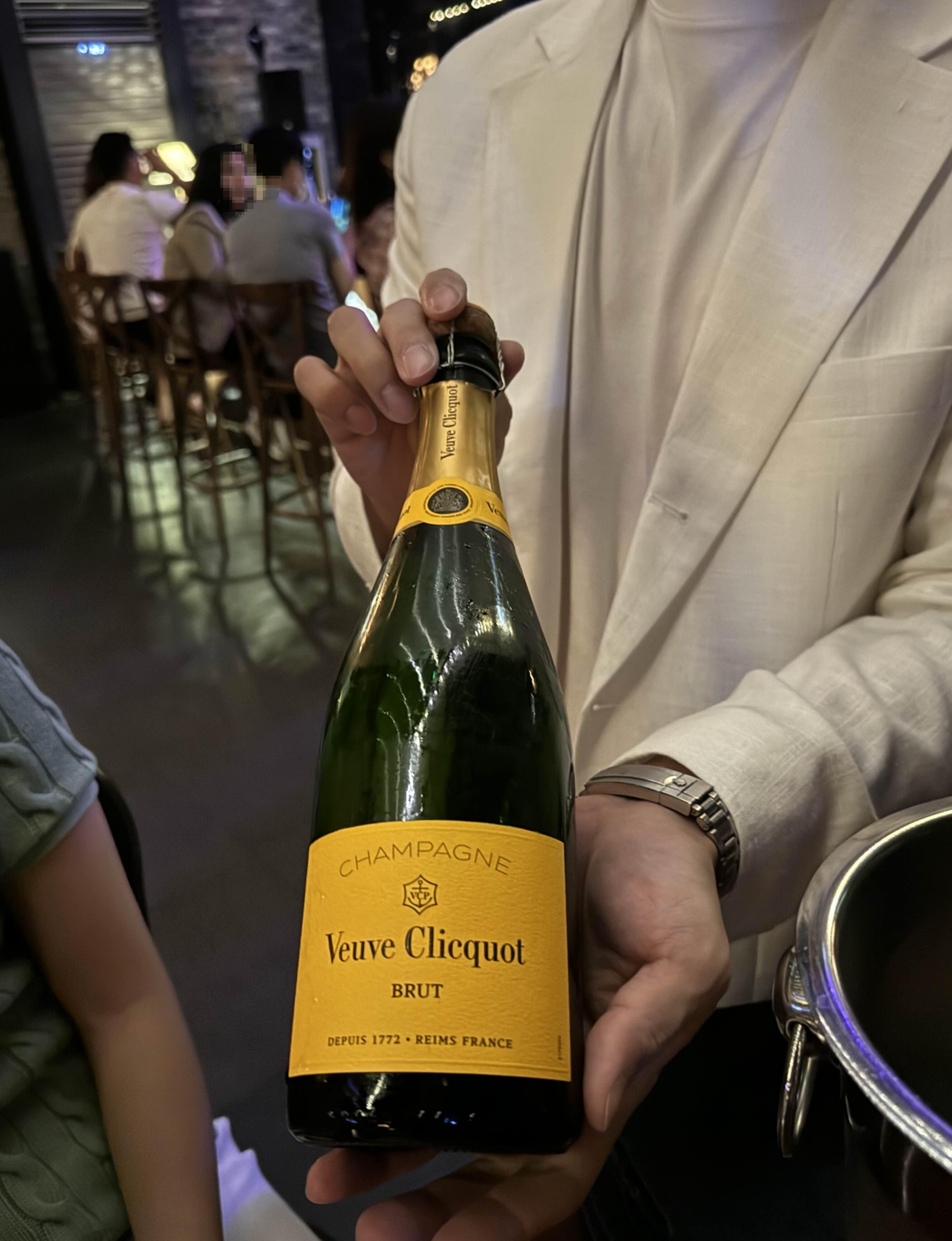저희는 샴페인 뵈브클리코브뤼랑, 멜론&프로슈토 시켰습니다.