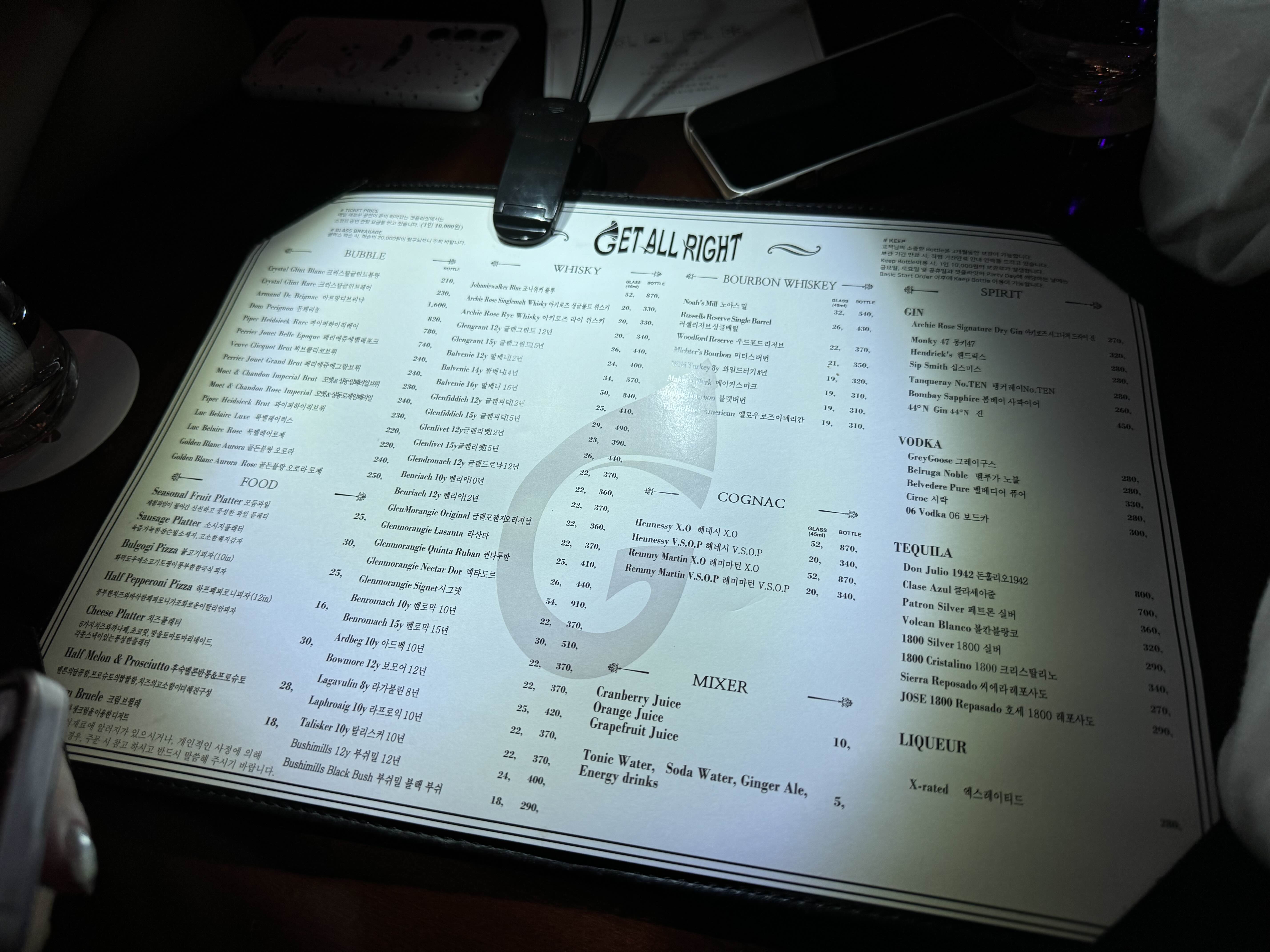 여기는 와인은 따로 없고 샴페인이랑 위스키 종류가 있더라고요.