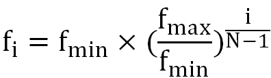 이 공식은 f에서 까지 주파수 구간을 로그 스케일로 일정한 비율로 나누는 방법입니다.