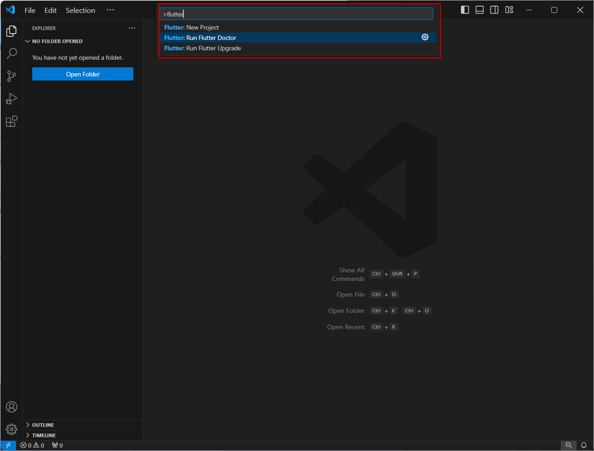 - VSCode에서 Ctrl+Shift+P 입력 후 Flutter 검색