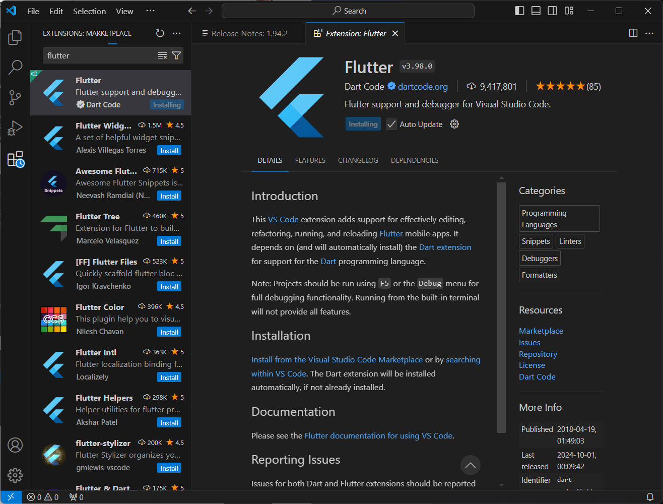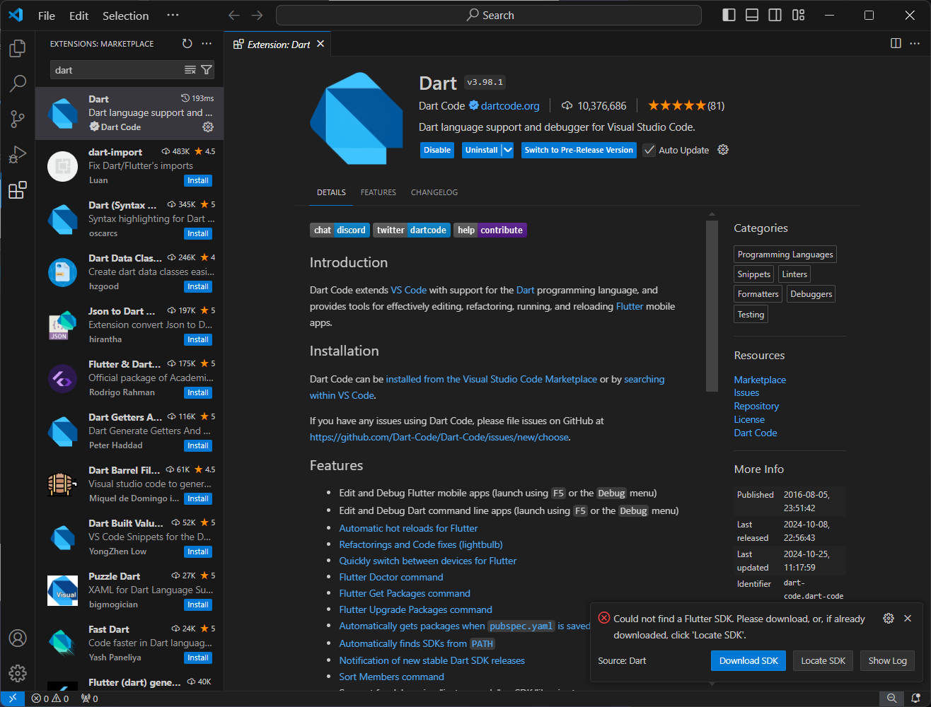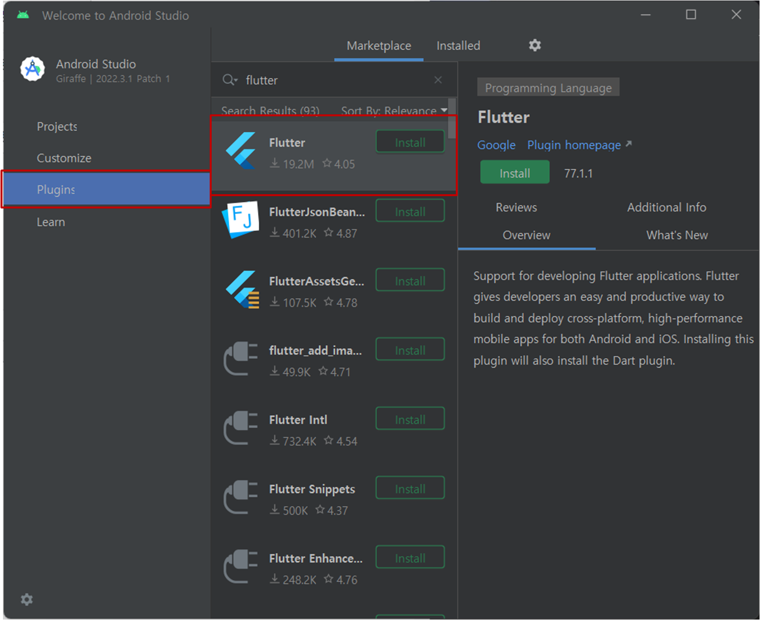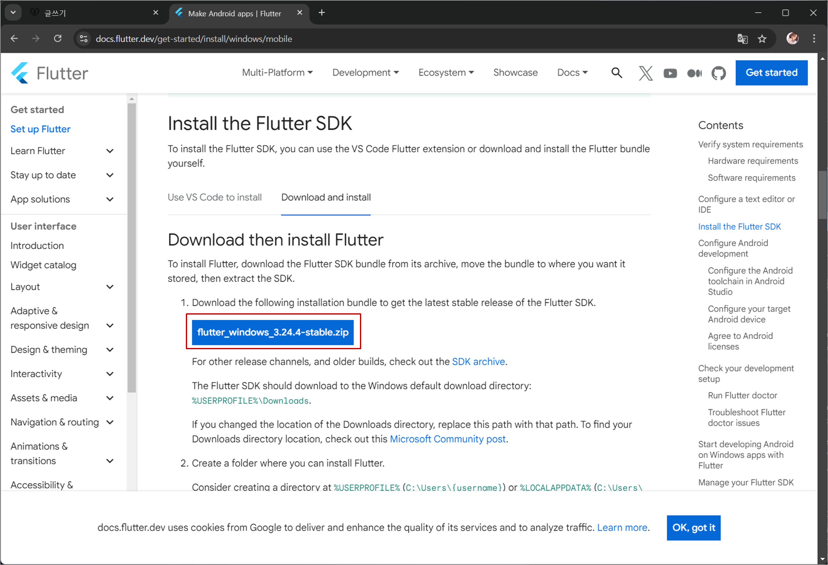 Flutter를 설치하면 Flutter 개발에 필요한 프로그래밍 언어인 Dart도 같이 설치됩니다.