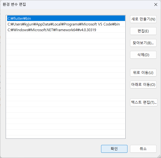 확인을 누르면 환경 변수 설정이 완료됩니다.