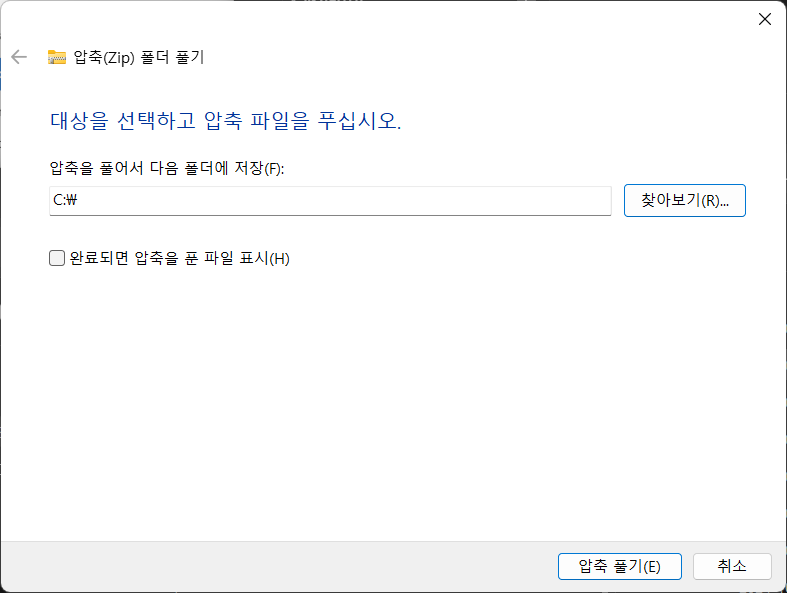 다운로드가 완료되면 C:\에 압축을 풉니다.