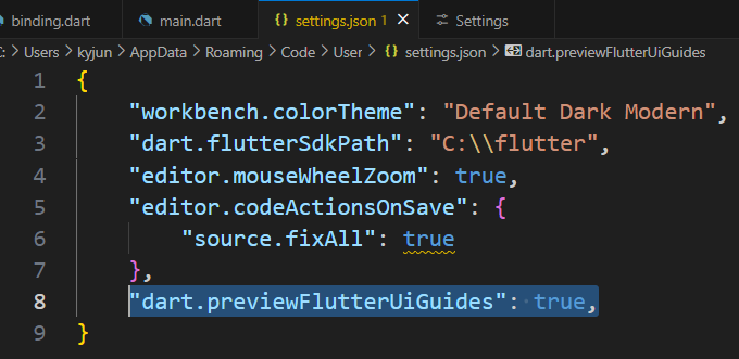 "dart.previewFlutterUiGuides": true,