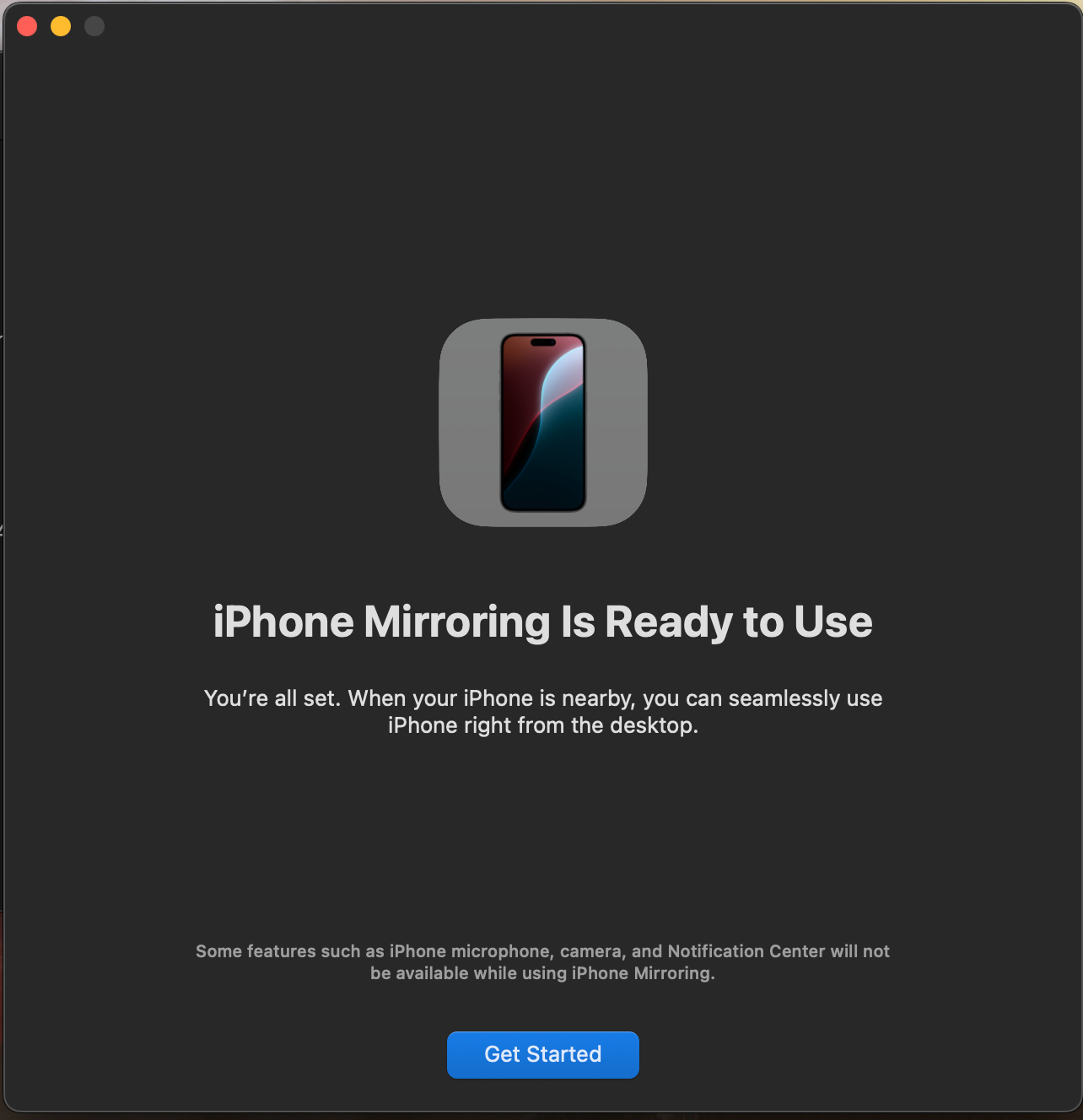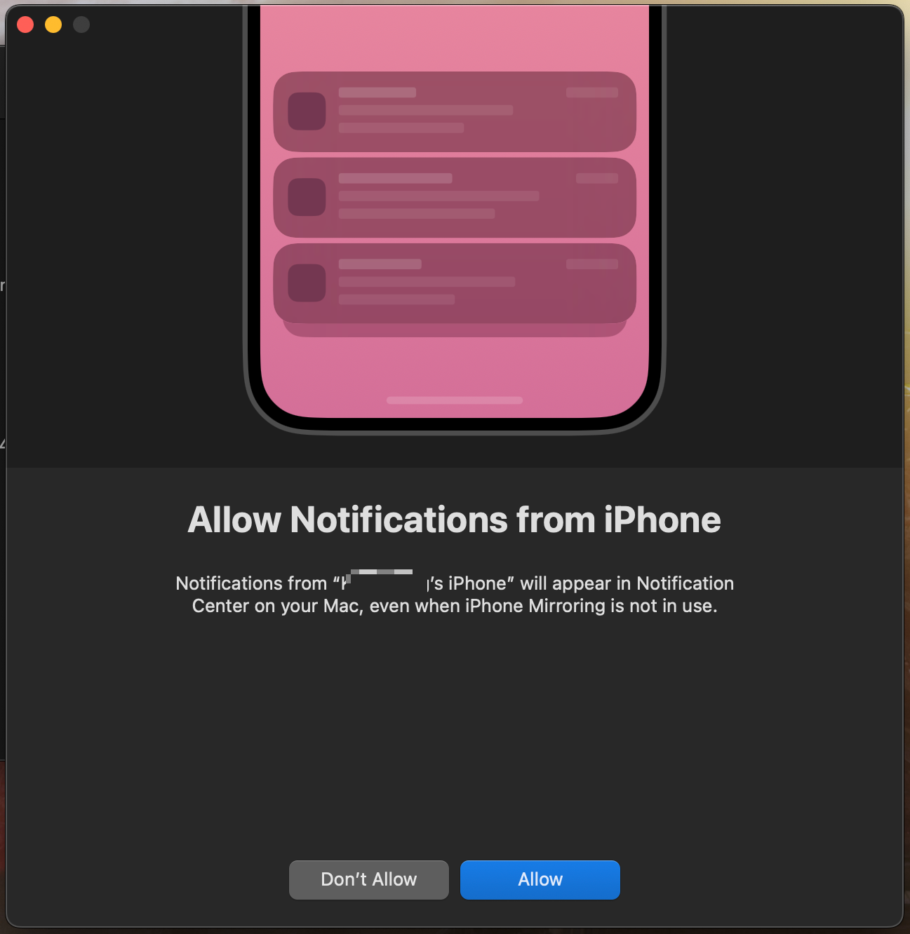 처음 iPhone Mirroring 앱을 실행하면 아래와 같이 초기 설정을 진행해줘야 합니다.