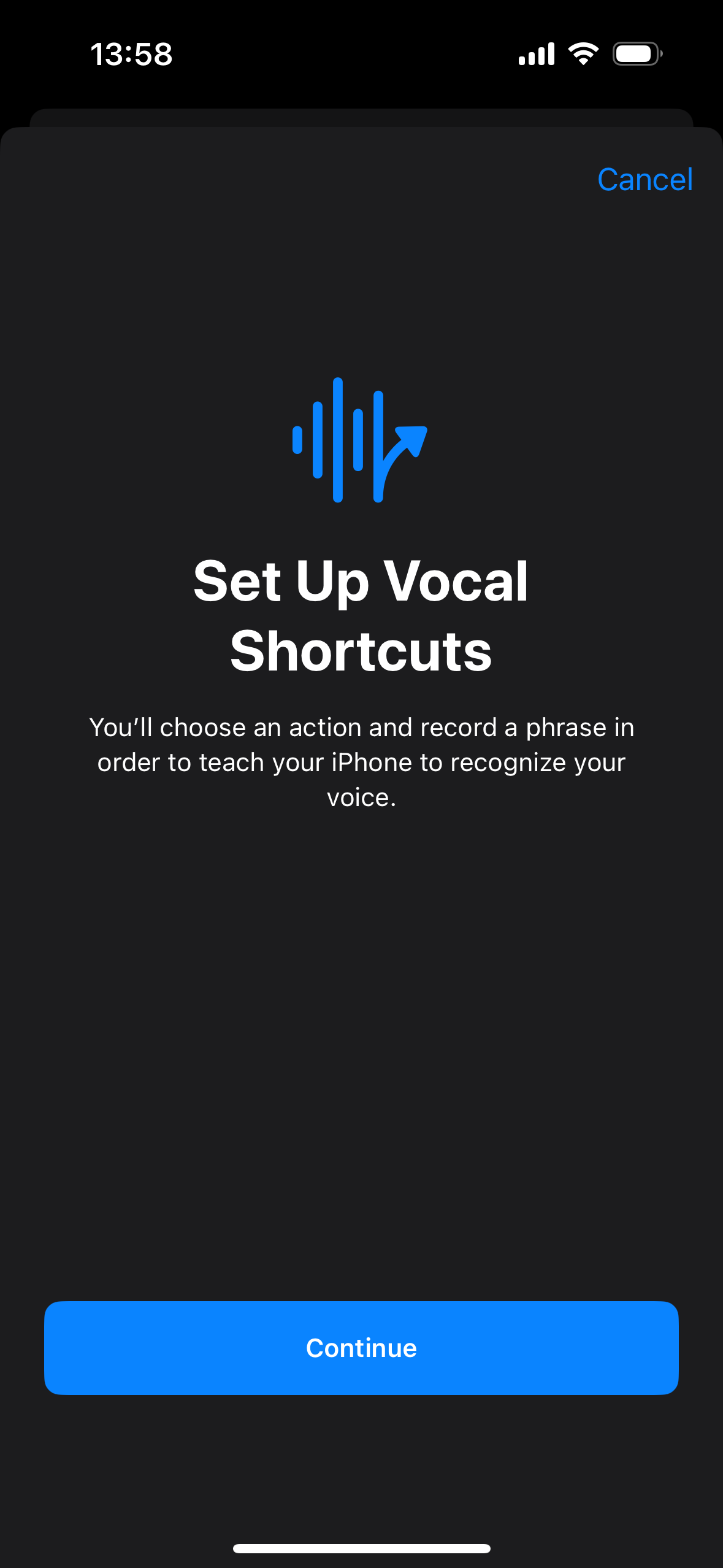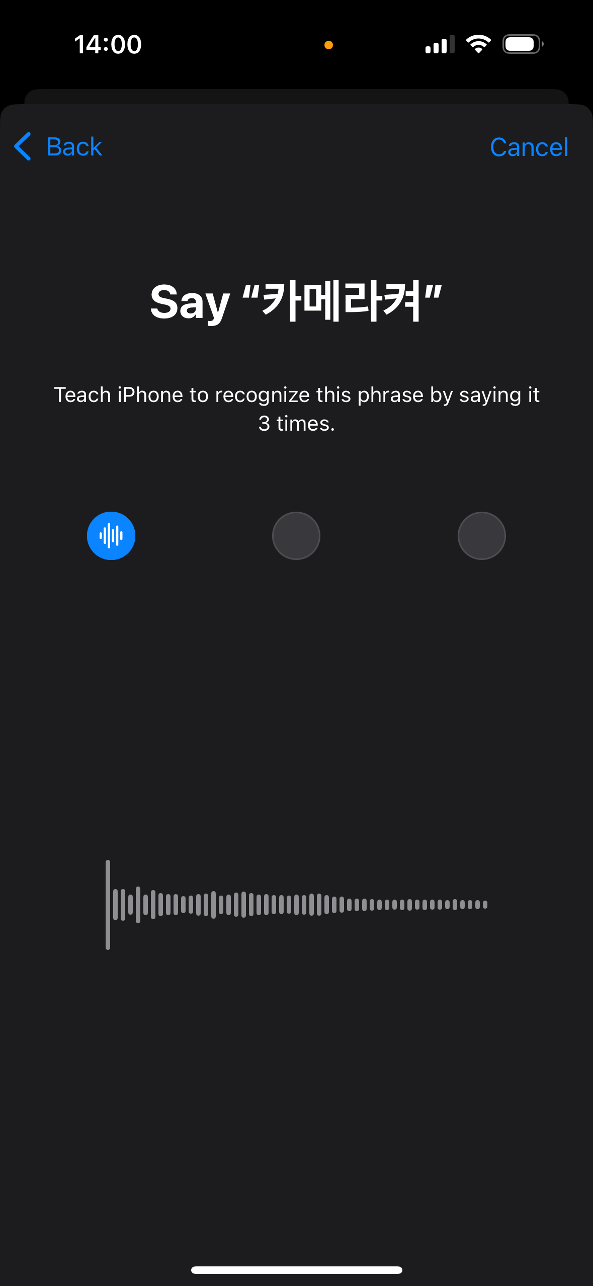 그럼 아이폰이 음성 단축어를 사용할 준비가 되었습니다.