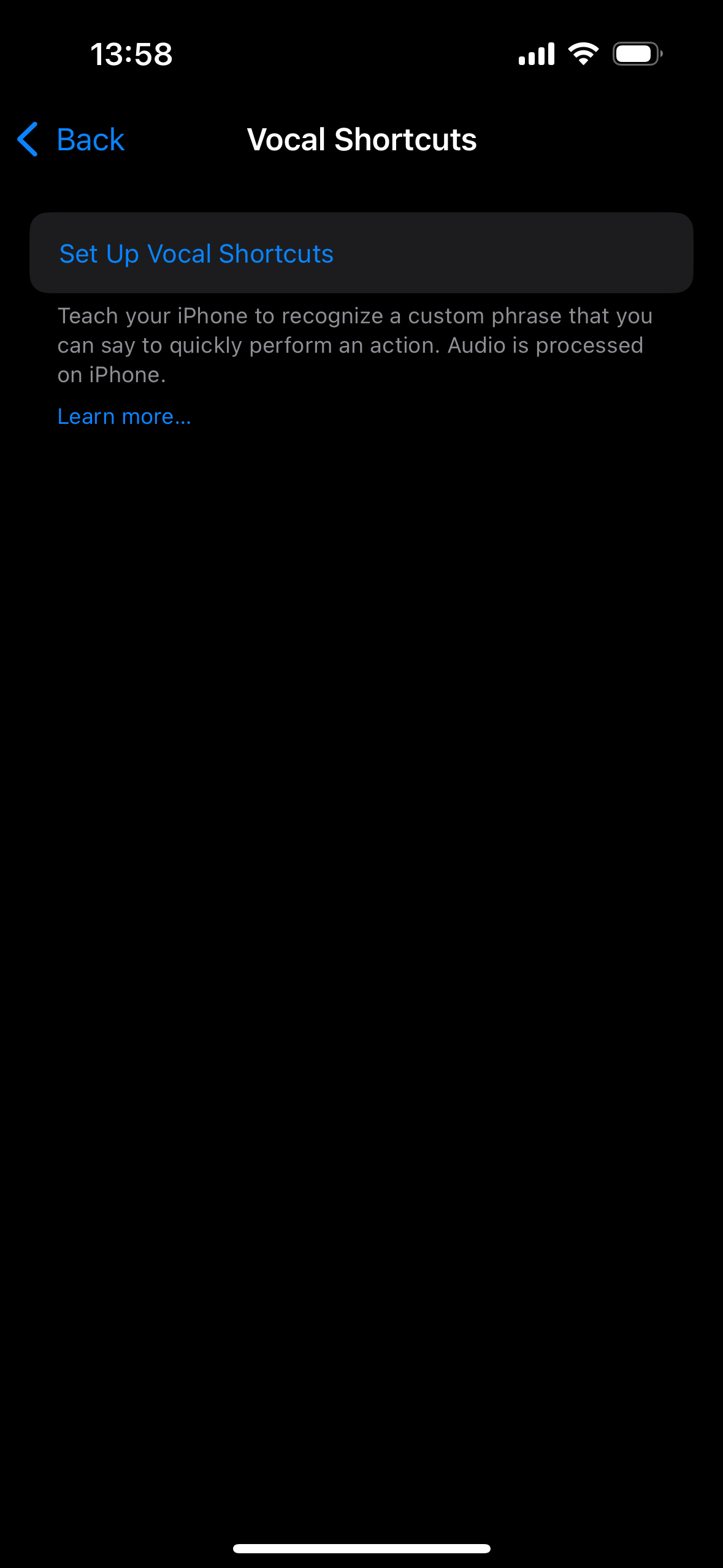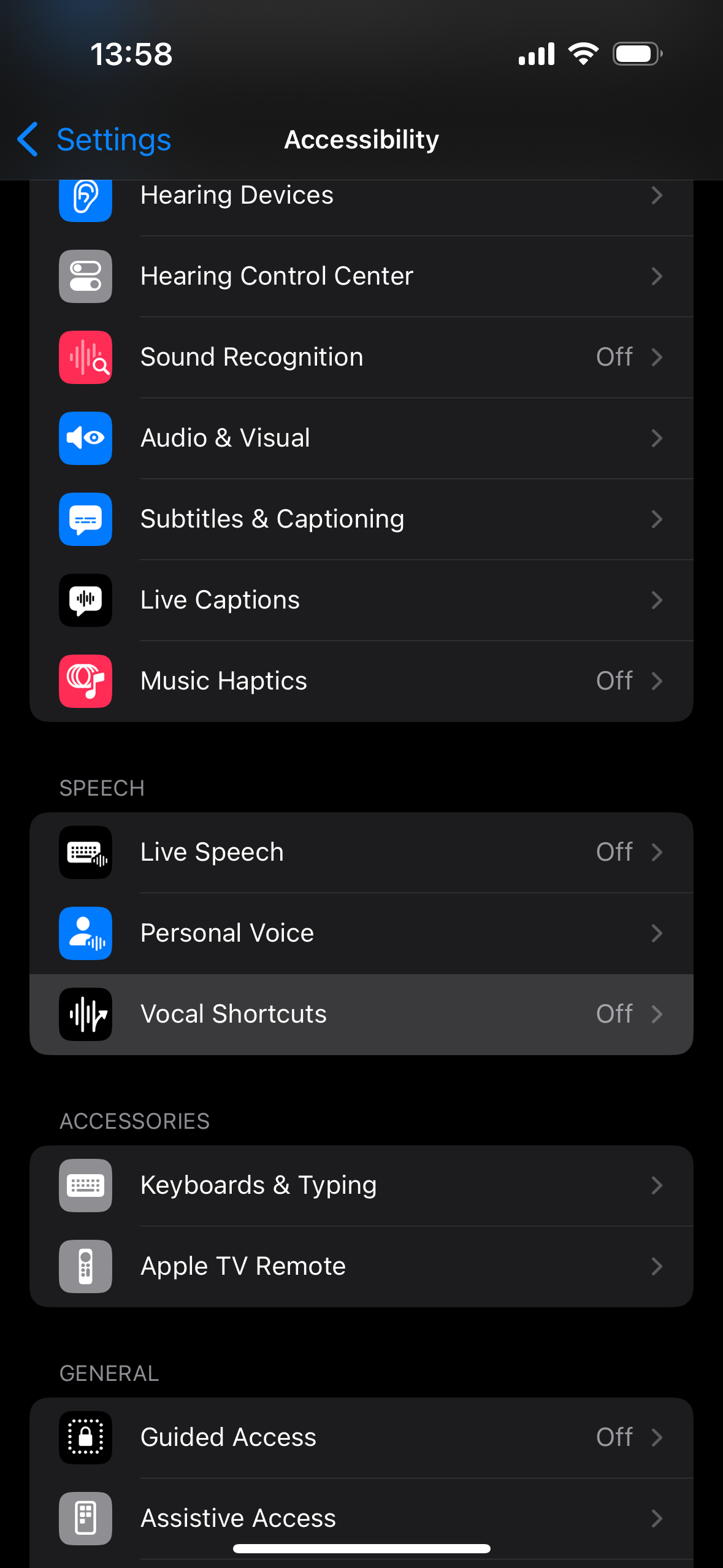 Settings > Accessibility > Vocal Shortcuts