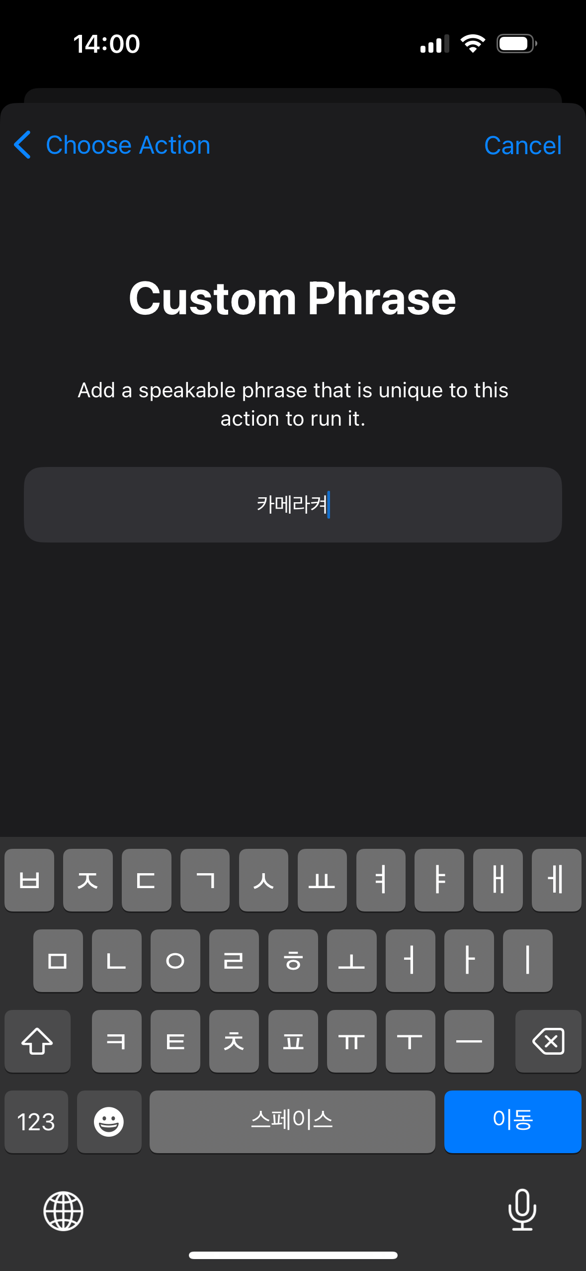 동작을 수행할 때 사용할 문구를 입력합니다.