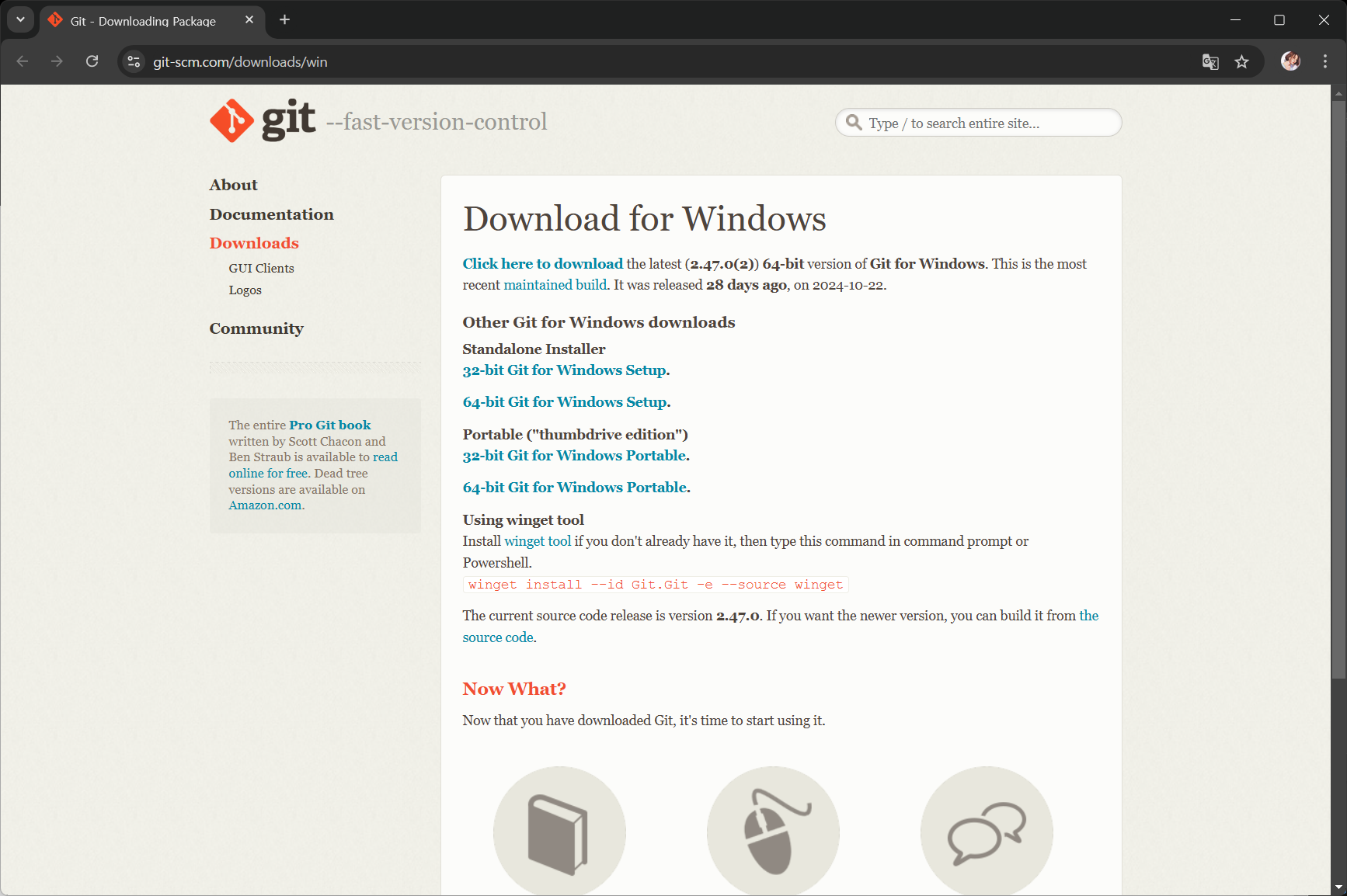 Download for Windows Click here to download the latest (2.47.0(2)) 64-bit version of Git for Windows. This is the most recent maintained build. It was released on 2024-10-22. Other Git for Windows downloads Standalone Installer 32-bit Git for Windows Setup