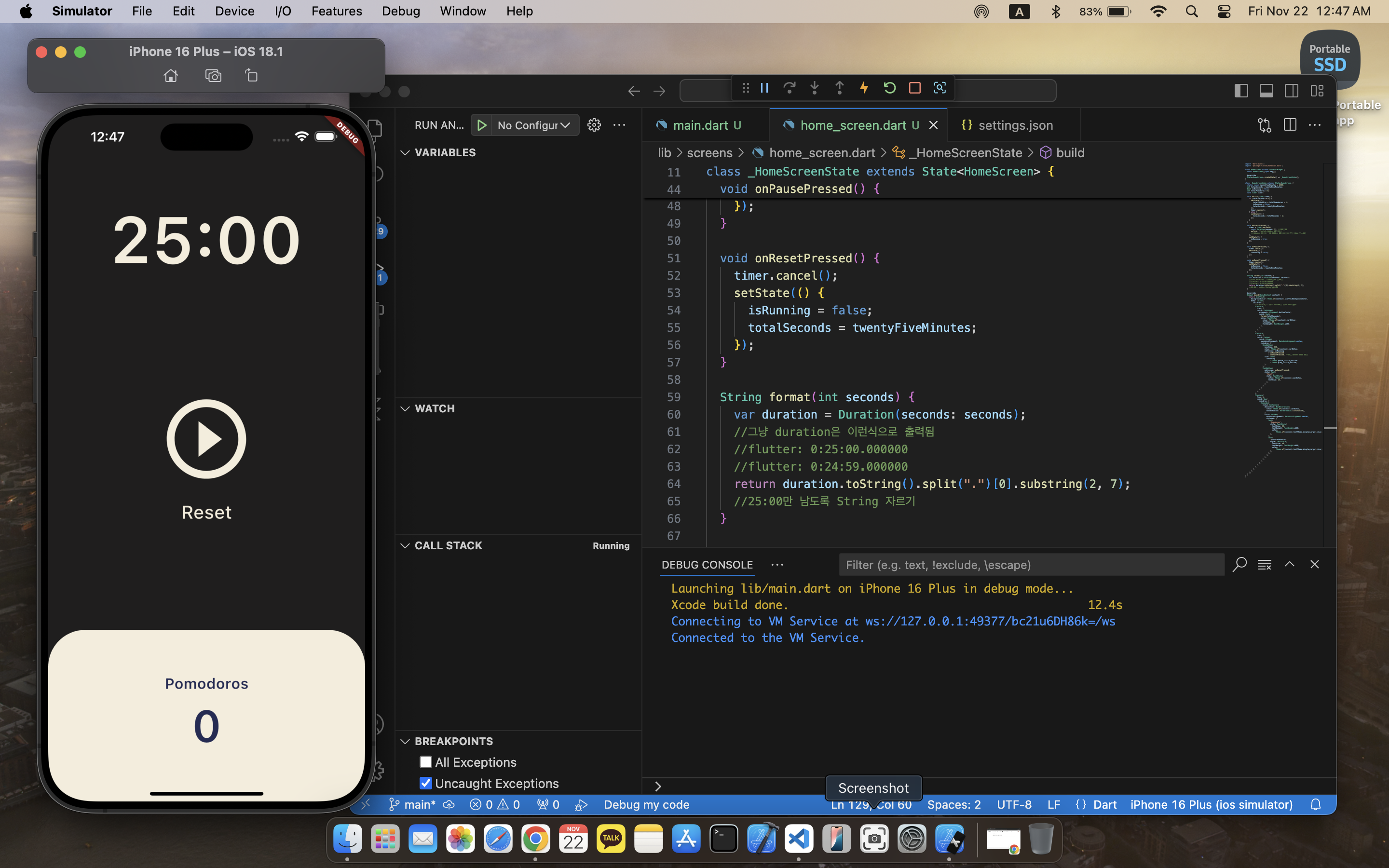 니꼬쌤이 강의하는 다트 강의 다 듣고 플러터 반쯤 들었는데, 이번에 POMODORO APP 강의 듣고 앱 만들기 해서 ㅋㅋㅋㅋ