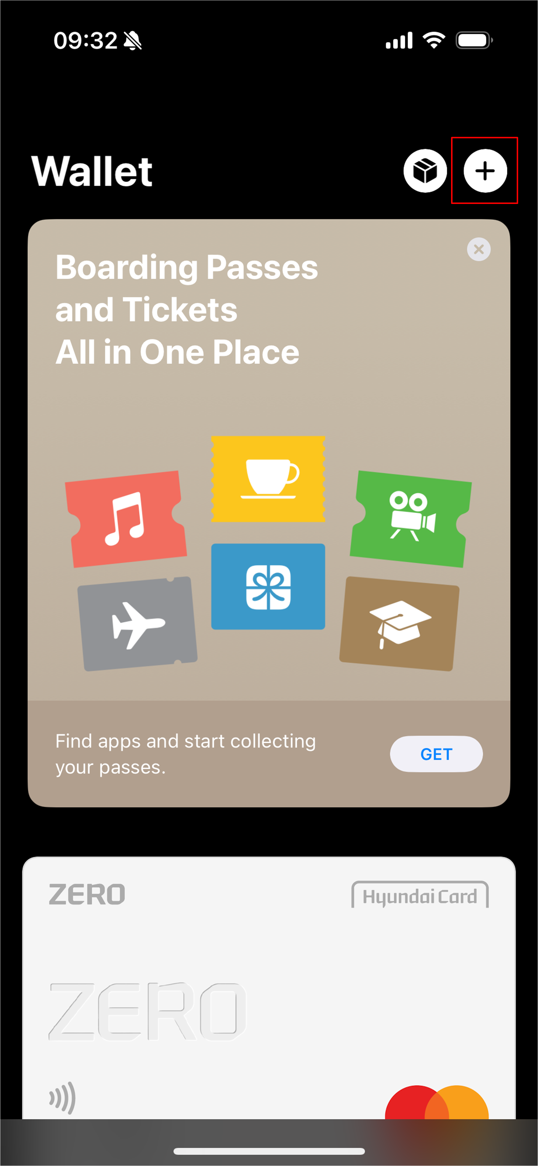 1. 애플월렛 > 우측 상탄 + 아이콘 클릭
