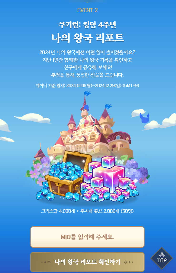 본인의 게임 MID를 입력하면 나의 왕국 리포트를 확인할 수 있습니다!