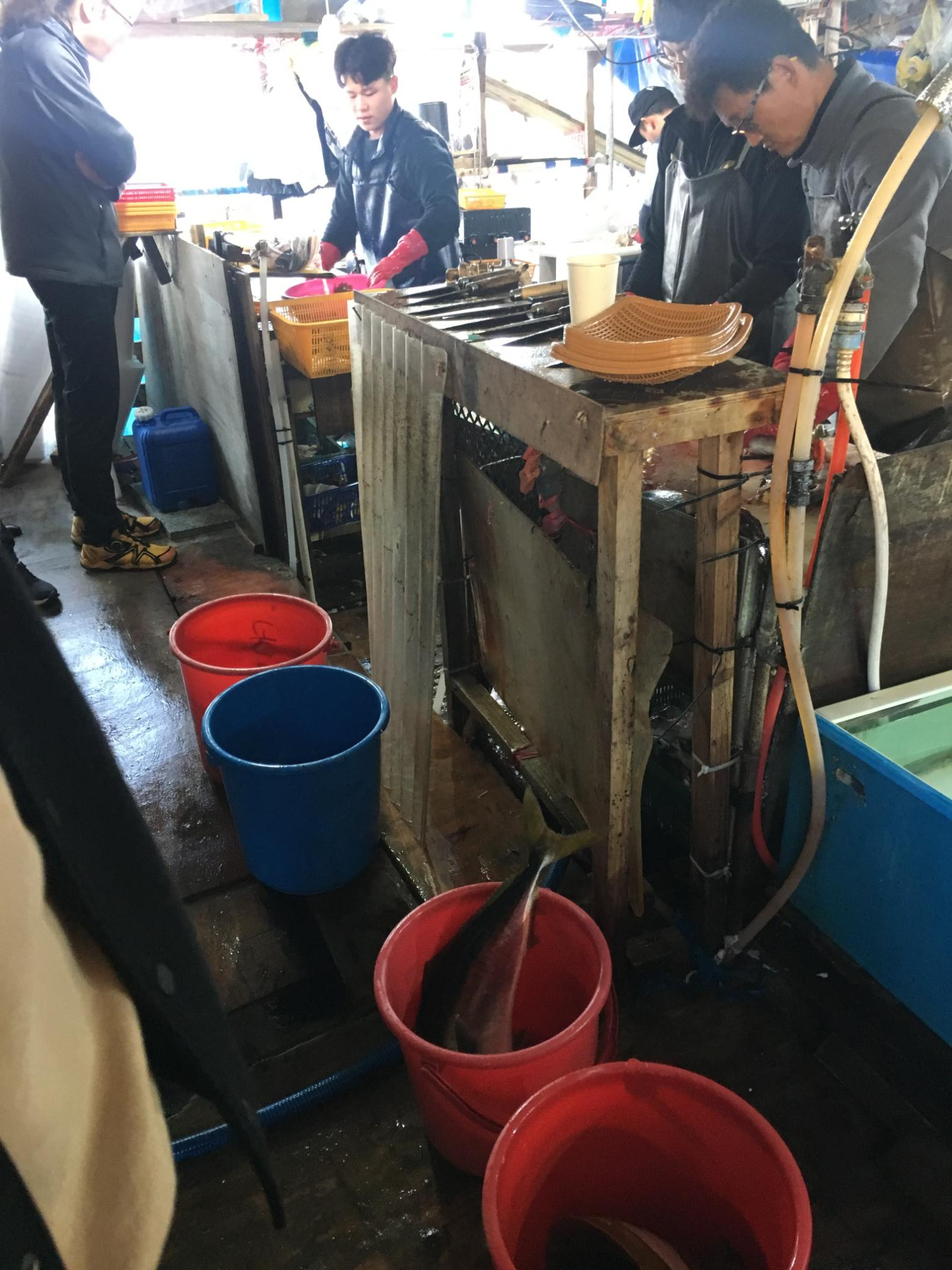 물고기를 고르면 옆에서 회를 떠주신다. 회 떠주는 비용은 또 따로 내야 한다.