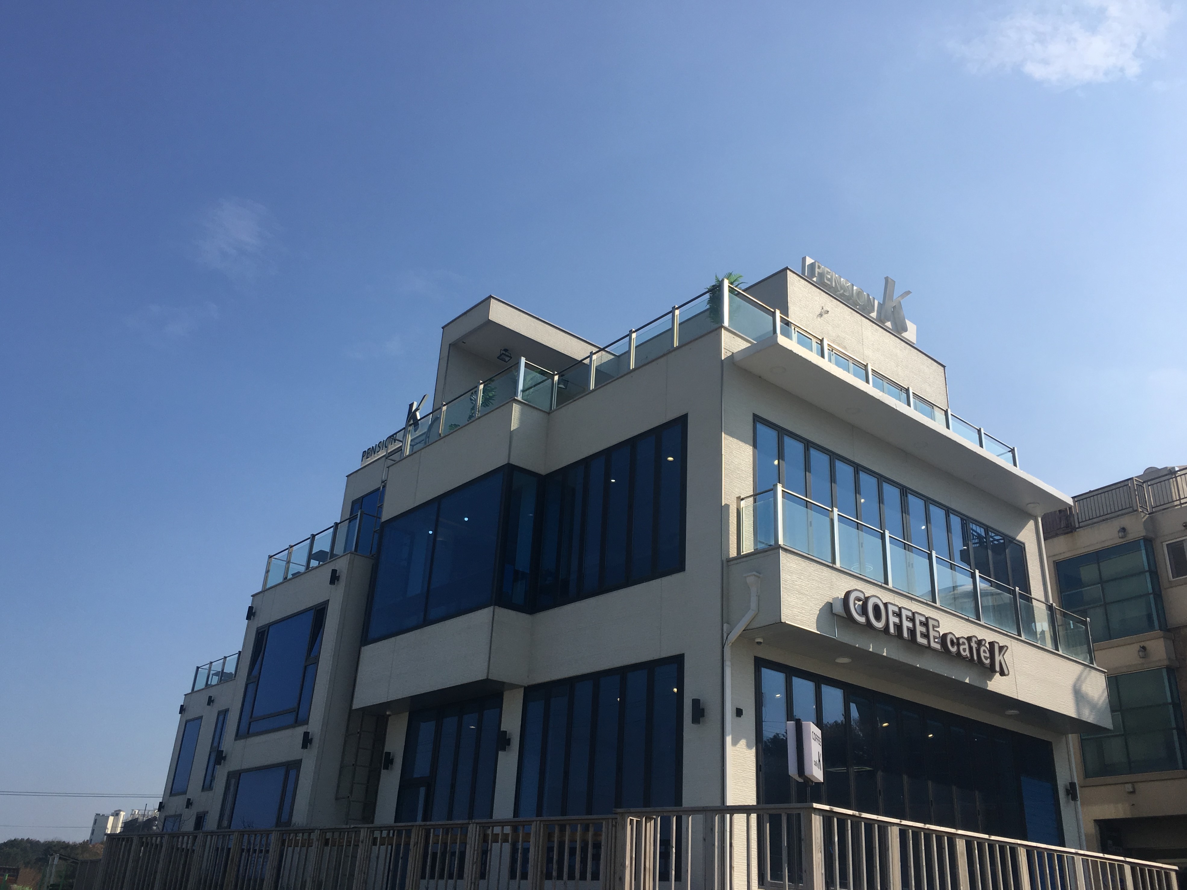 사진에 있는 건물은 A동이고 1층에 있는 Cafe K에서 체크인을 하고 카드키를 받았다.