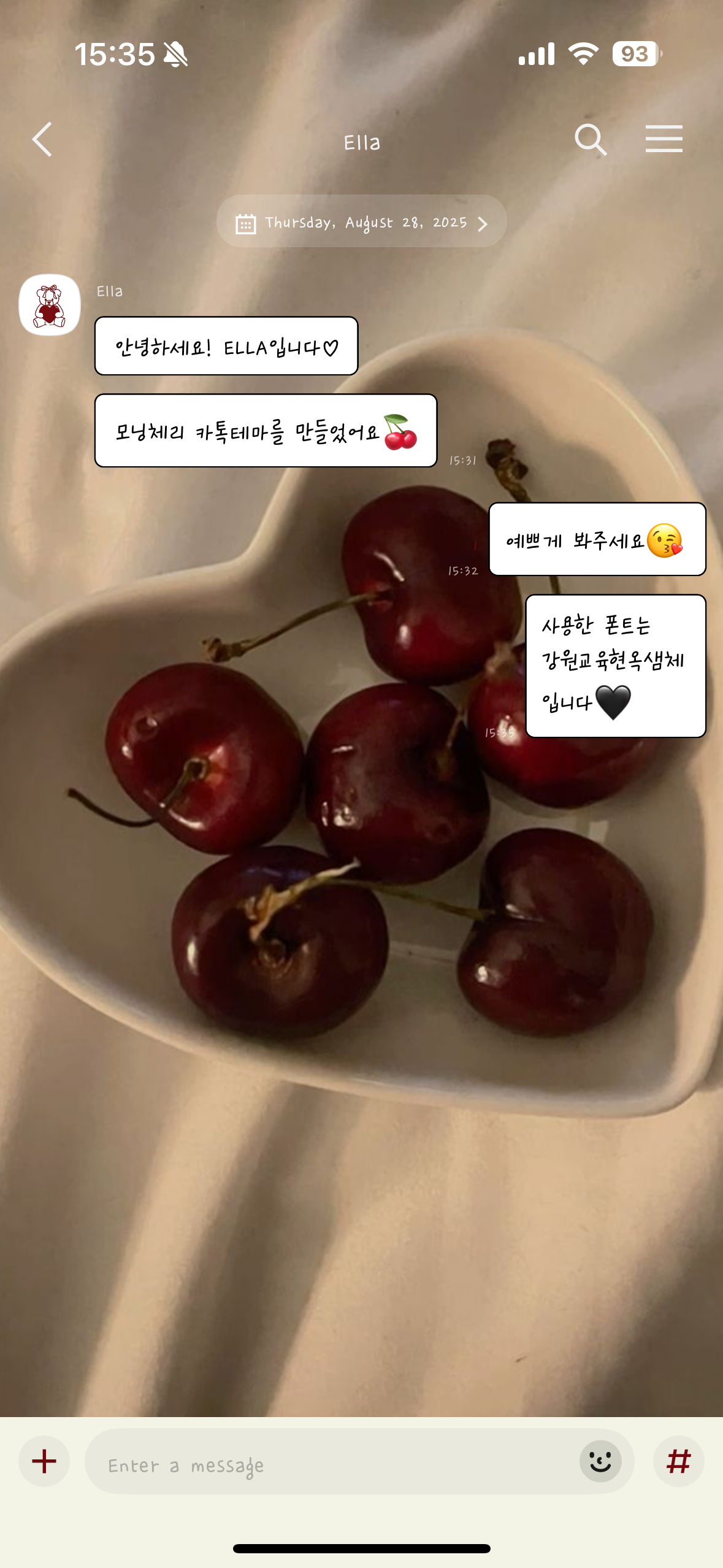 2023.08.11 - [IT/KakaoTalk Themes] - Cherry가 부탁한 체리카톡테마🍒 아이폰/안드로이드(+추가) 카톡테마 무료 공유❤