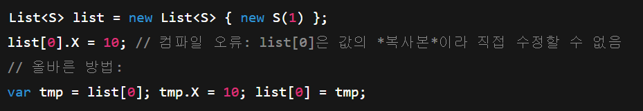 권장: struct는 가능하면 불변(immutable) 으로 설계하라.