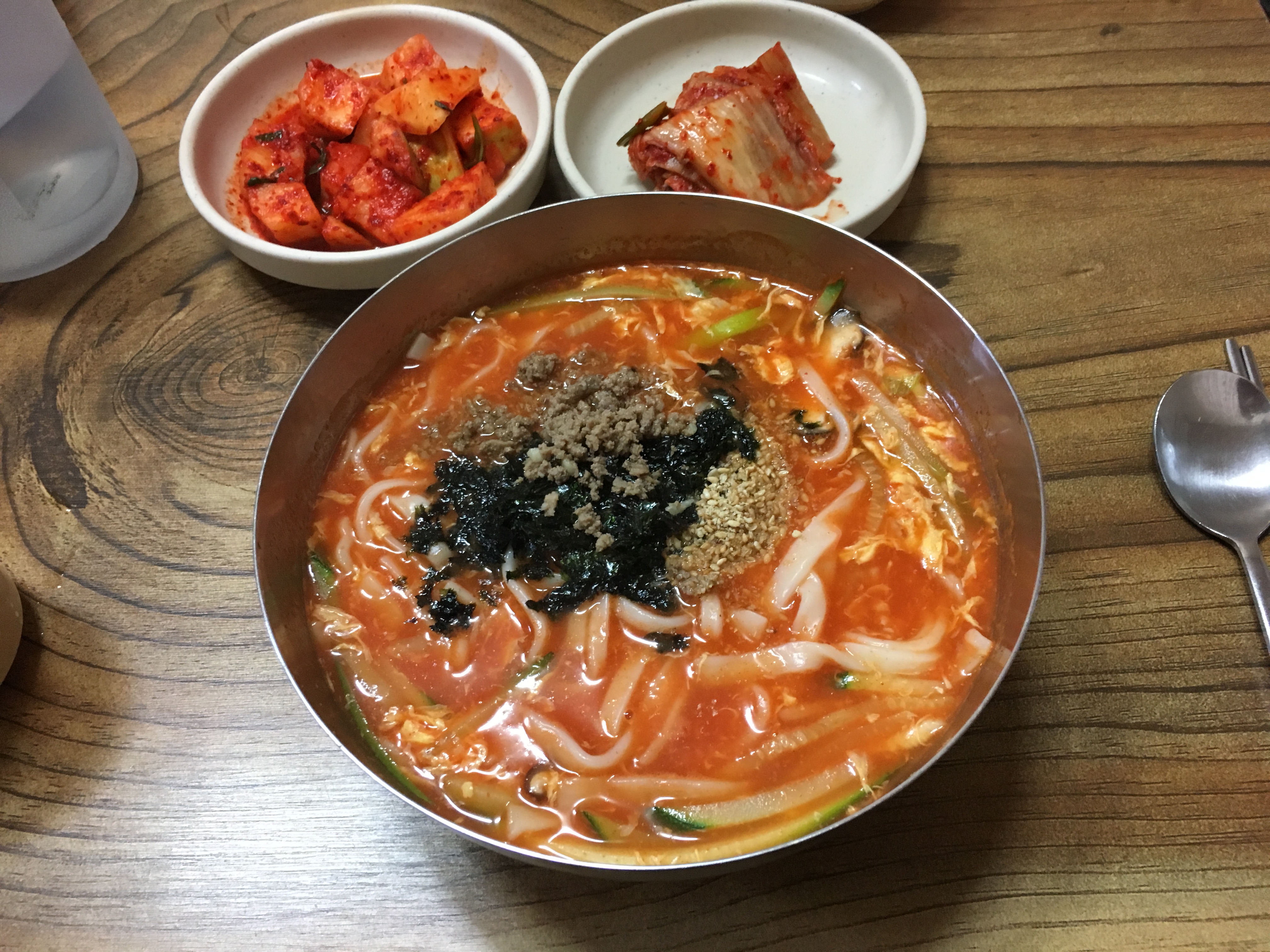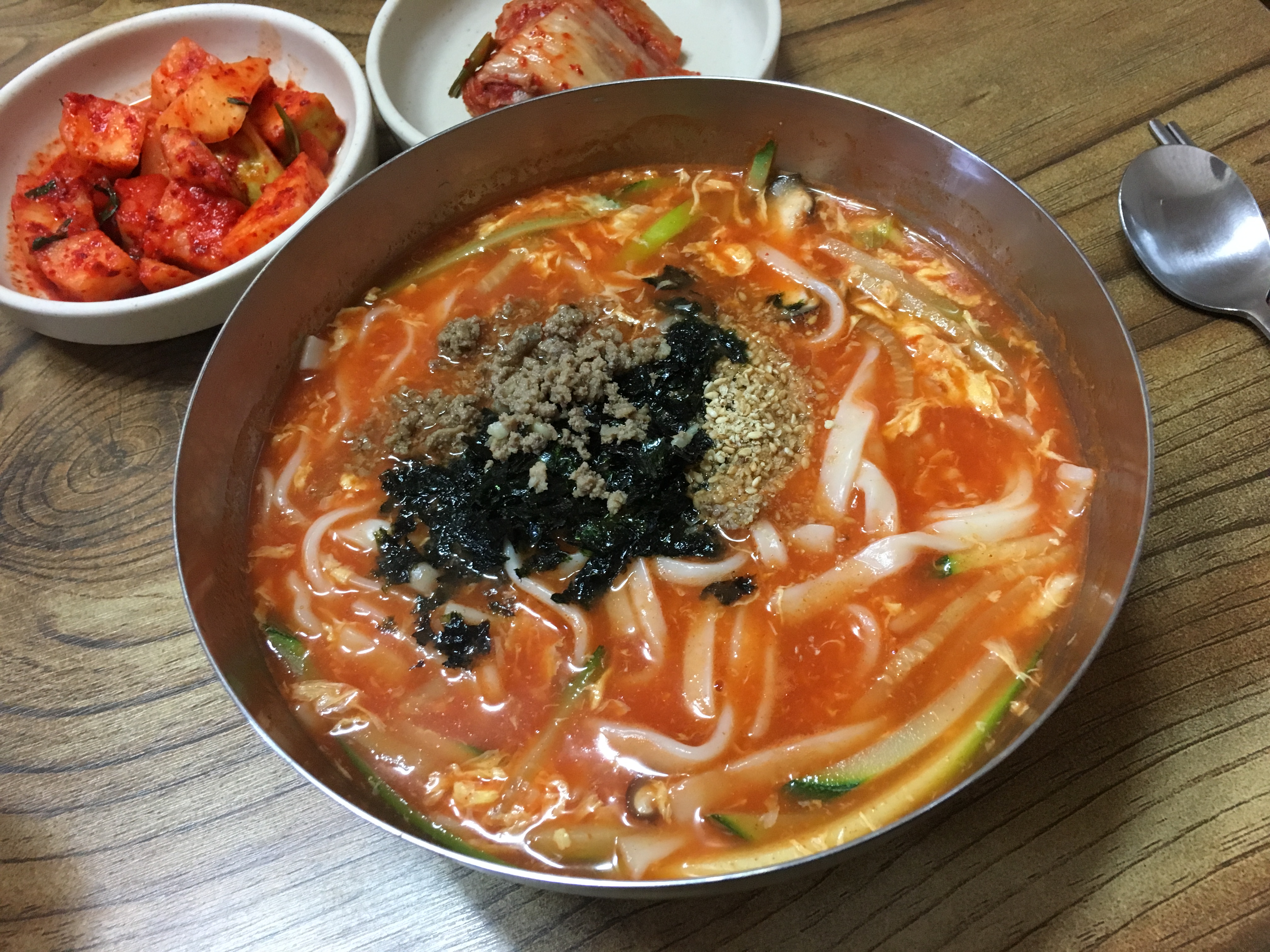 장칼국수라고 보면 되는데 국물에 고추장 맛이 나면서 시원했다.