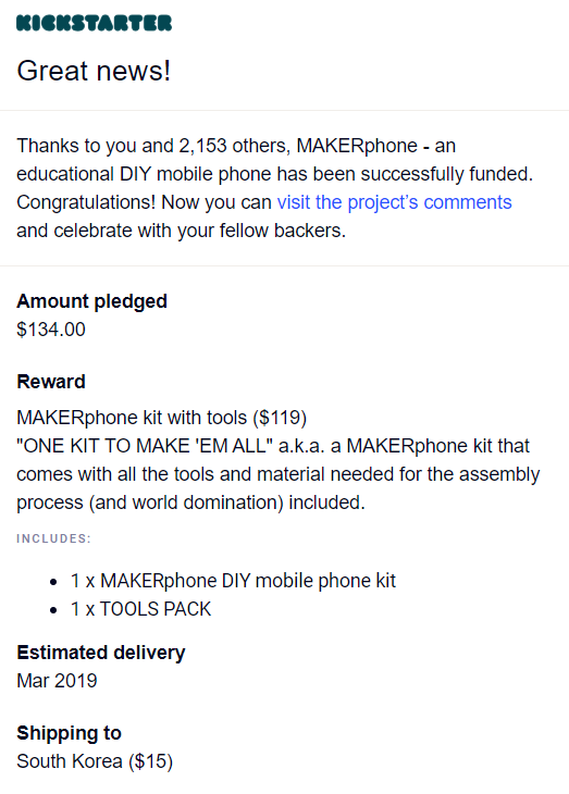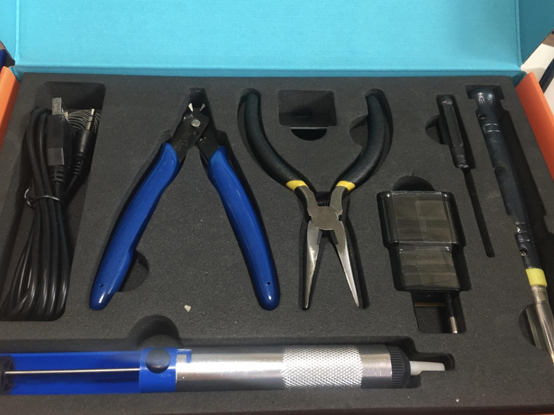 내가 펀딩한 키트는 MAKERphone kit with tools로 납땜과 조립에 필요한 도구가 포함된 키트였다.