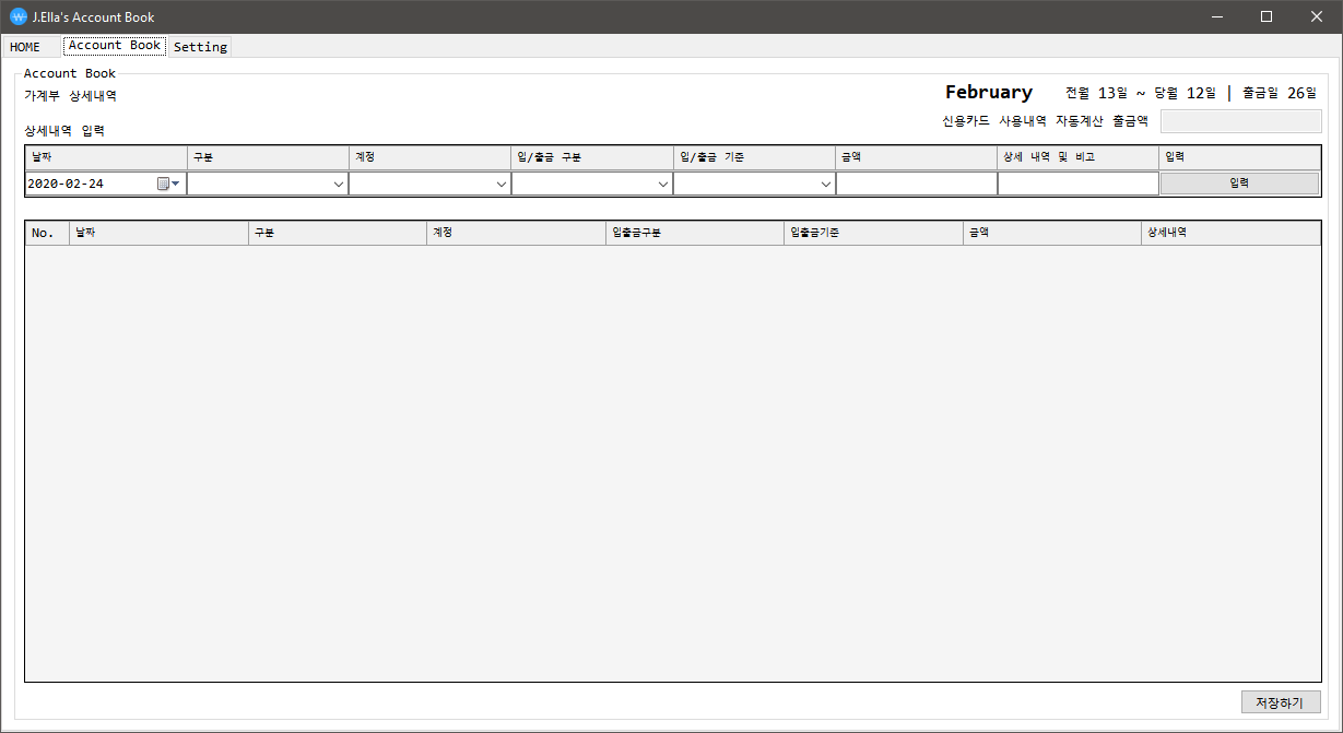 위와 같이 가계부 입력을 위한 환경 설정이 다 끝났으면, 본격적으로 가계부 입력을 하기위해서
