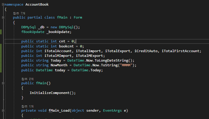 마지막으로, Form_Load 이벤트 이외에도 가계부 내역 입력 시에나 변경 시 Main 화면에 Update가 필요할 때도 InitMain()을 호출해주면 금액이 들어오고 나오는 내용을 화면에 반영시킬 수 있습니다.