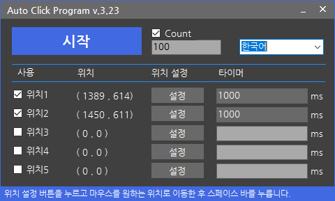 또한, Count를 추가하여, Count 값을 입력하고 선택하면 입력한 횟수만큼 클릭이 자동 실행됩니다.
