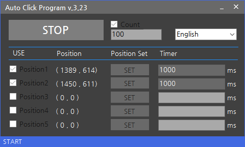 START 버튼을 누르면 자동 클릭 프로그램이 실행됩니다.