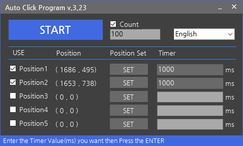 각 포지션은 SET 버튼 클릭마우스를 원하는 위치에 두고 스페이스바를 눌러 설정합니다.