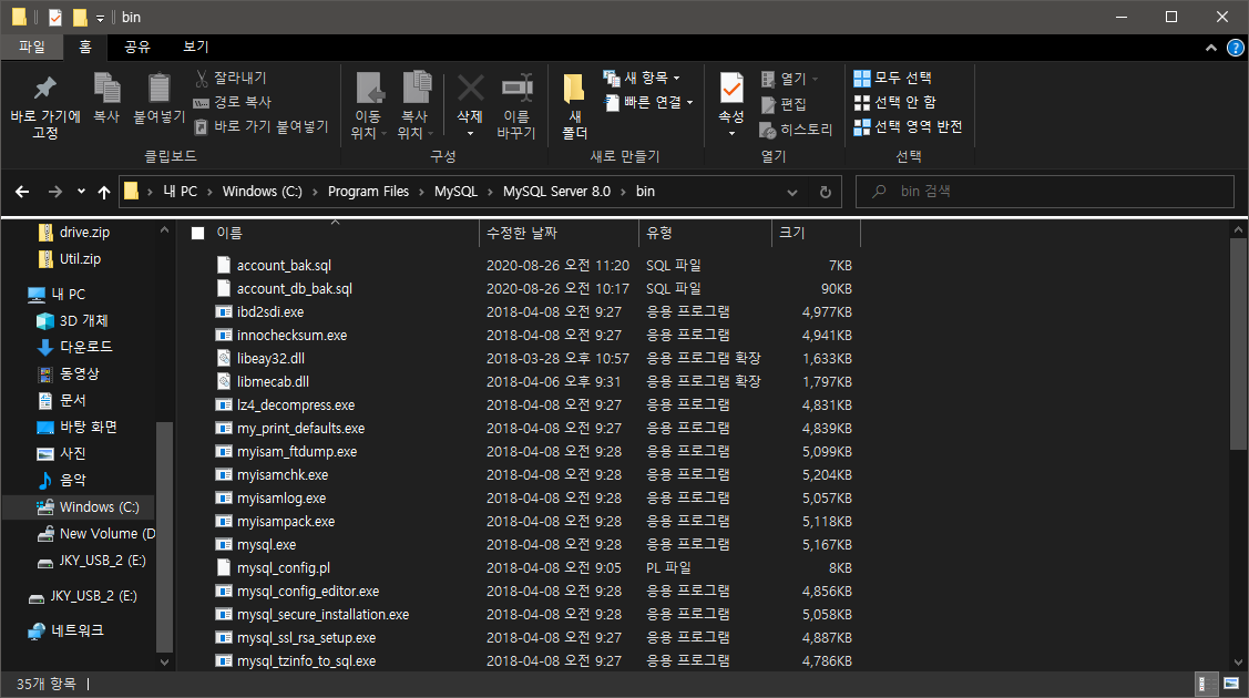 먼저 내 데이터베이스 서버 bin 폴더 위치를 확인한다.