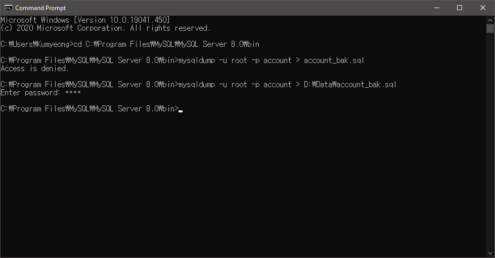 >cd C:\Program Files\MySQL\MySQL Server 8.0\bin
