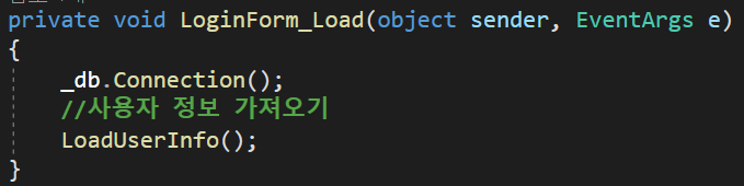 LoginForm.cs 에서 위와같이 데이터베이스 클래스를 _db 로 선언해주고