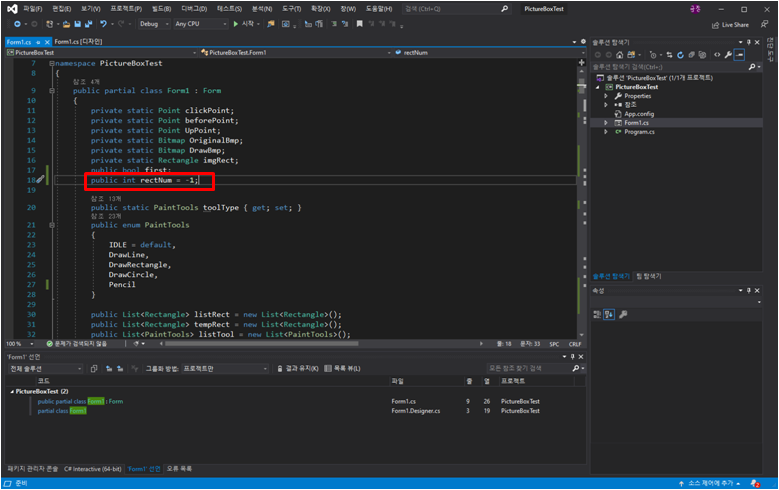 그러기 위해서 전역 변수로 위 사진과 같이 rectNum을 선언해서 사용했다.