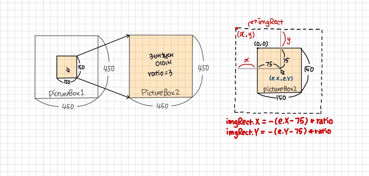 // pictureBox2 마우스 위치기준 imgRect X, Y 값 변경
