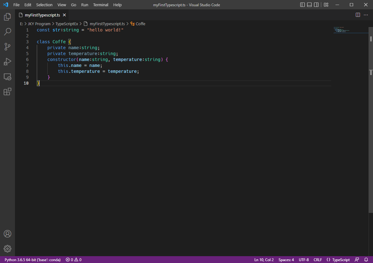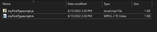 프롬프트에서 컴파일하기 [tsc myFirstTypescript.ts]