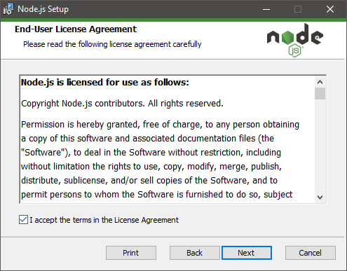 설치가 끝나고 나면, cmd에서 [>node -v] 버전을 확인한다.