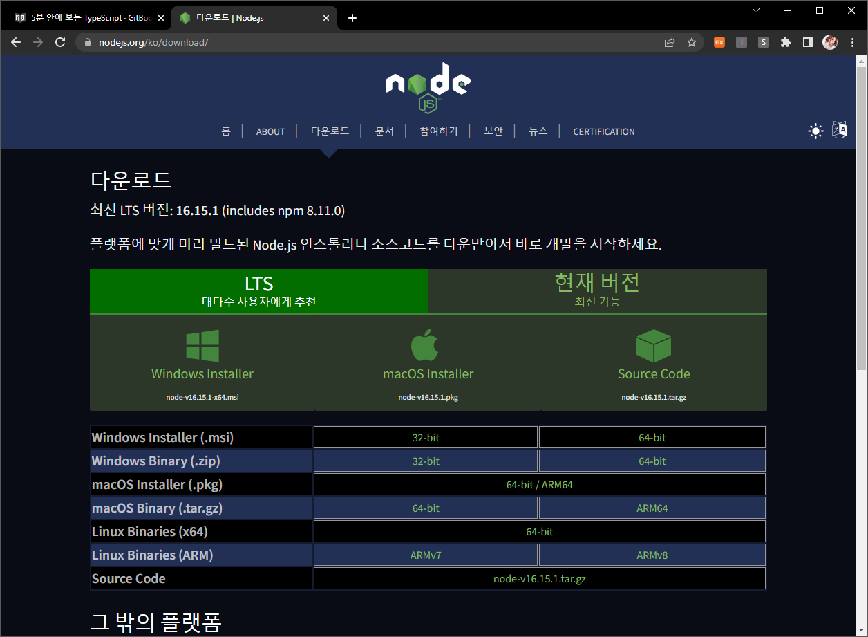 각자 사용하는 OS, 환경에 따라 Installer를 다운로드한다.