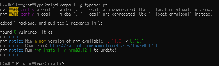 [>npm i -g typescript] 혹은 [>npm i -D typescript]