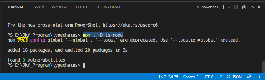 terminal 에서 [>npm i -D ts-node] 설치