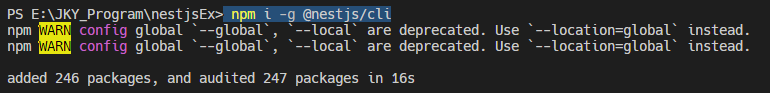 VSCode Terminal에서 [>npm I -g @nestjs/cli] 입력해서 nestjs 설치.